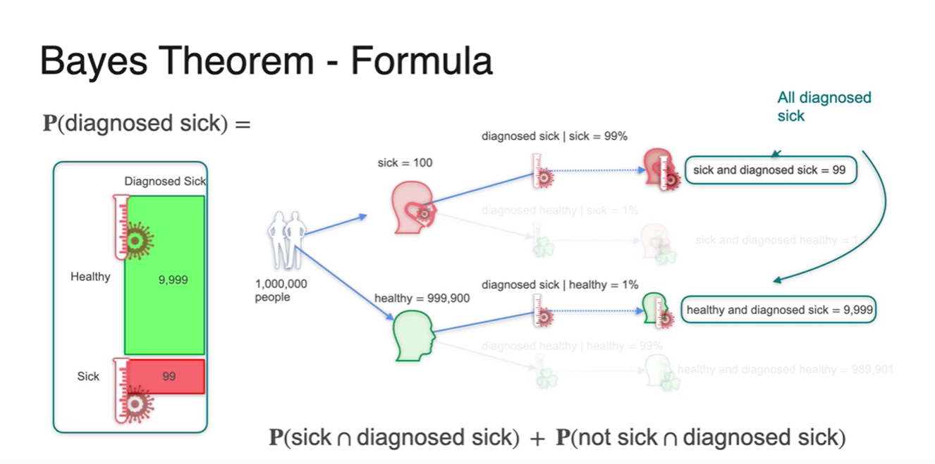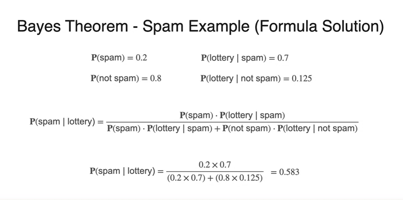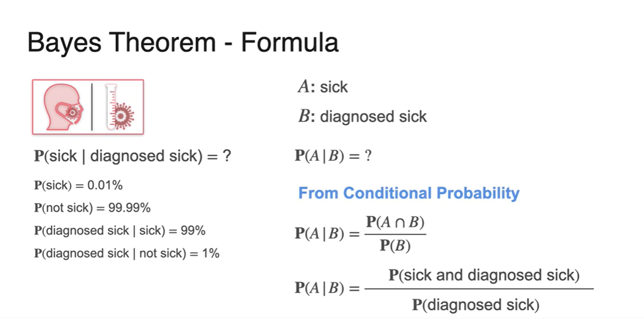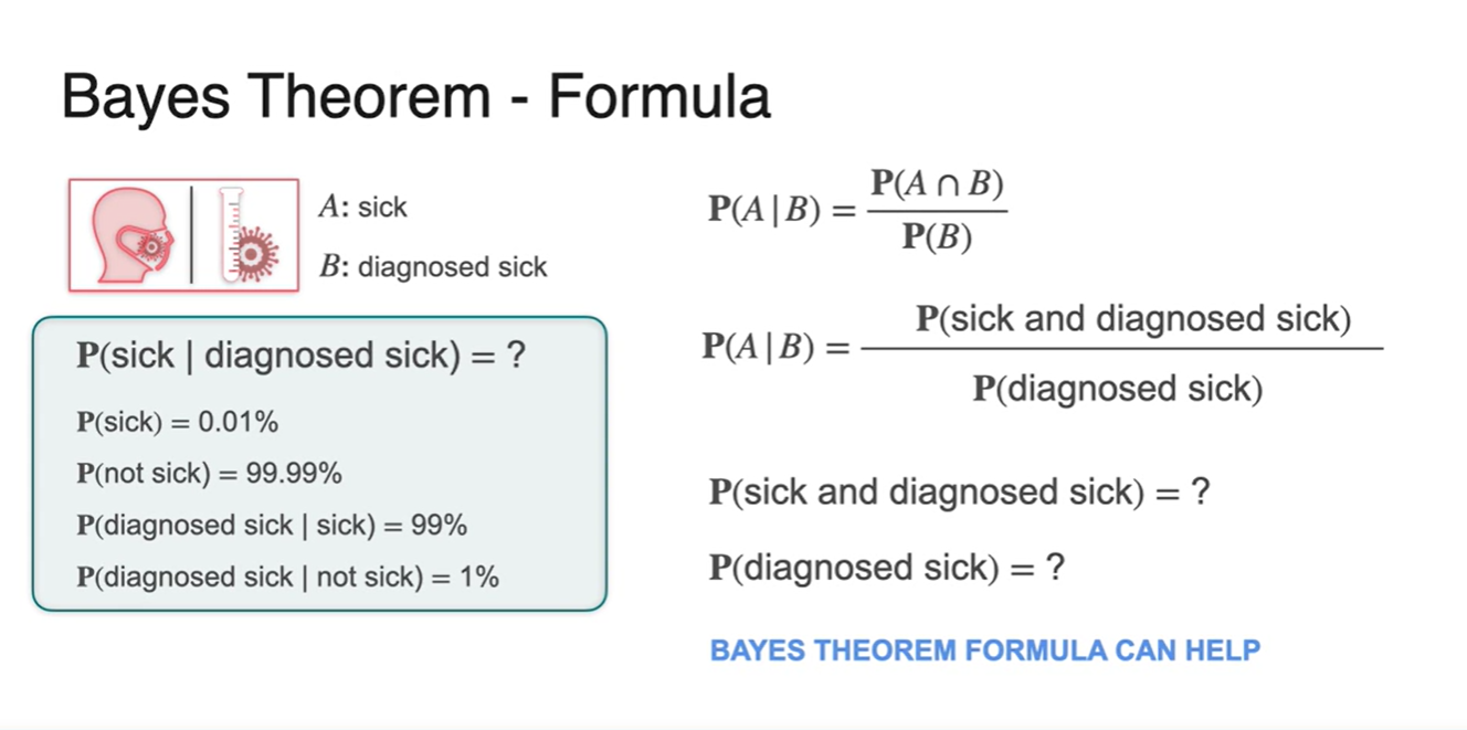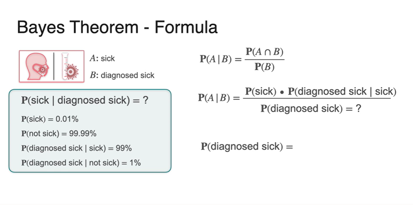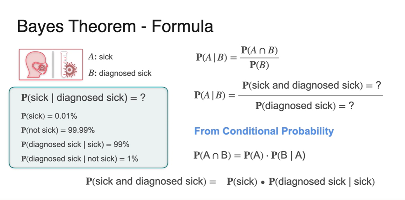 다시 한 번 정리하면 다음과 같은 식으로 Bayes Theorem 예시를 전개할 수 있다.