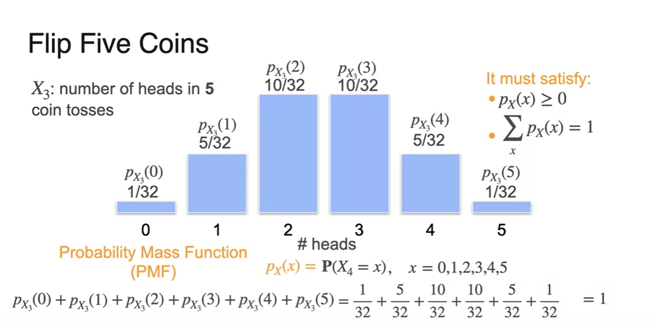 Random variable에 따른 확률 분포 함수는 PMF(Probability Mass Function)라 한다.