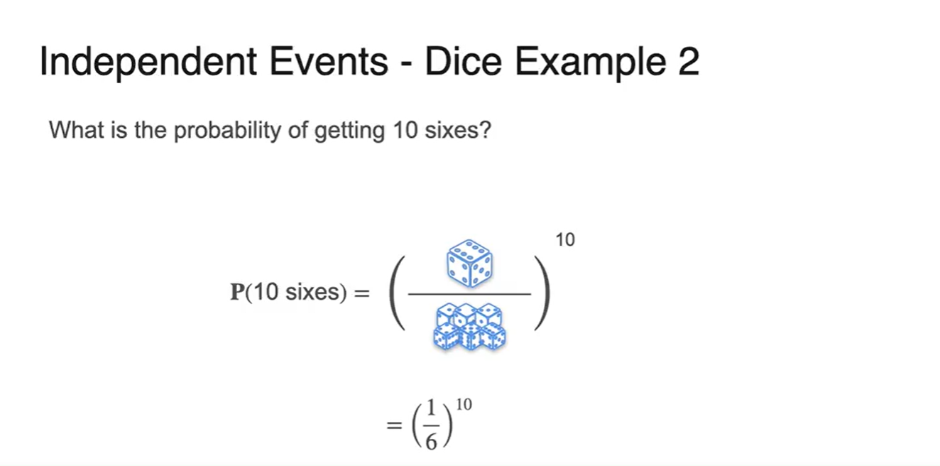 만약 10번 던졌을 때 모두 6이 나올 확률은?