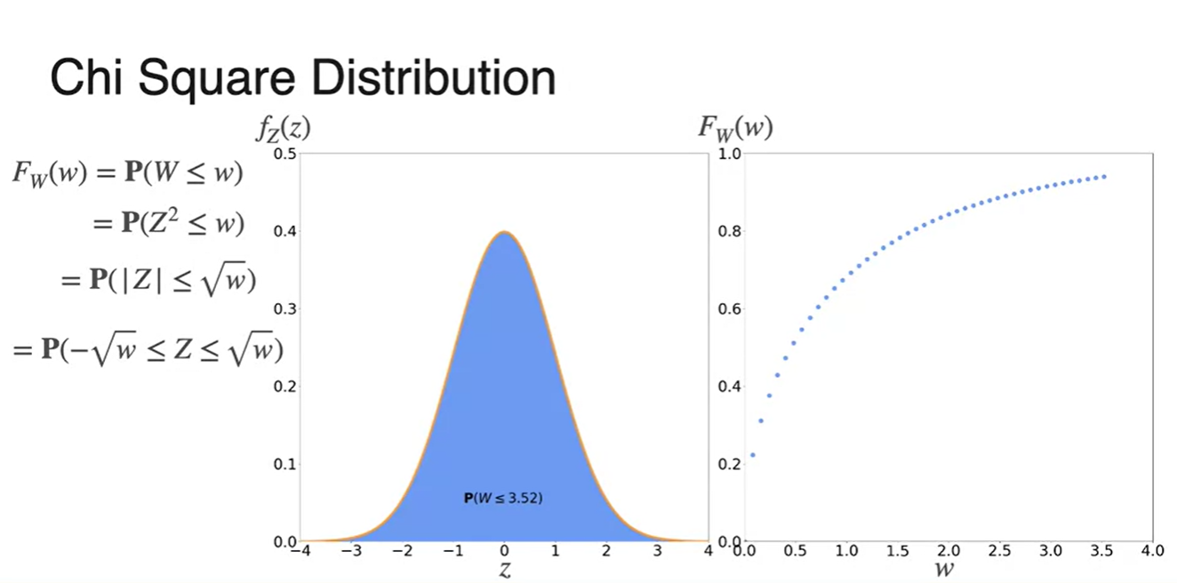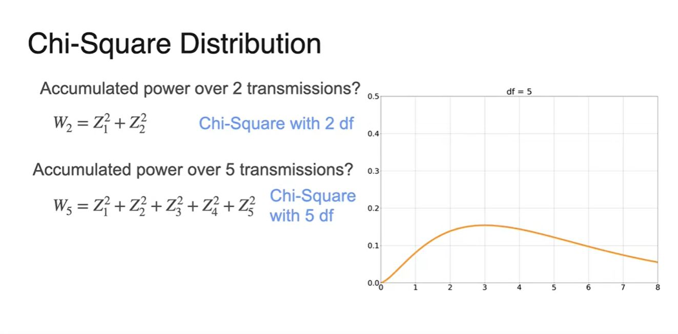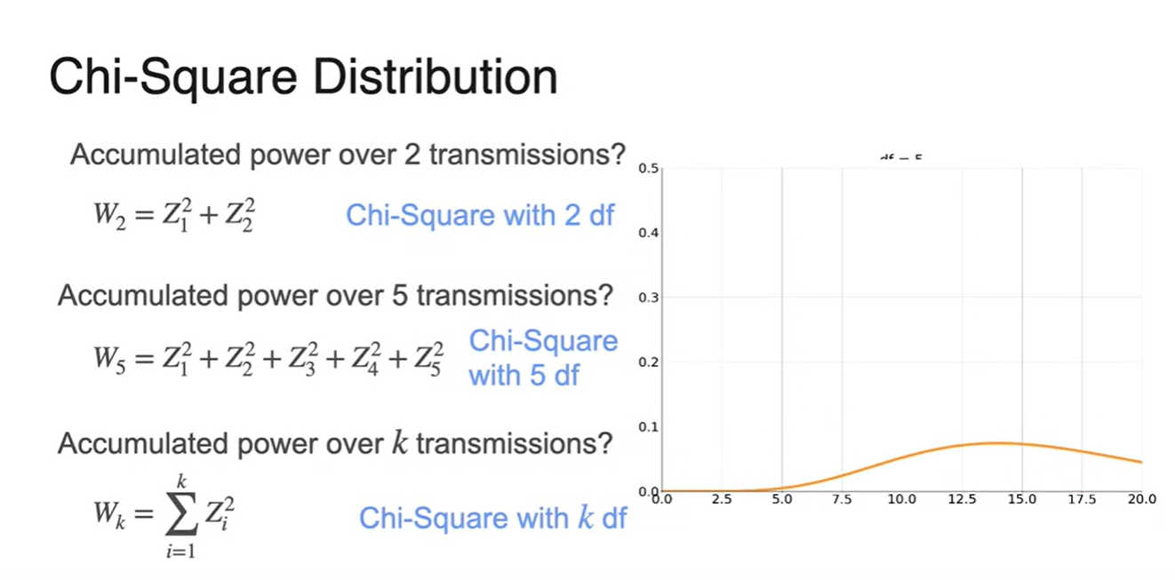 Chi-Square Distribution은 normal distribution을 확률 분포로 갖는 여러 개의 의 합을 모델링하고 싶을 때 쓰인다.
