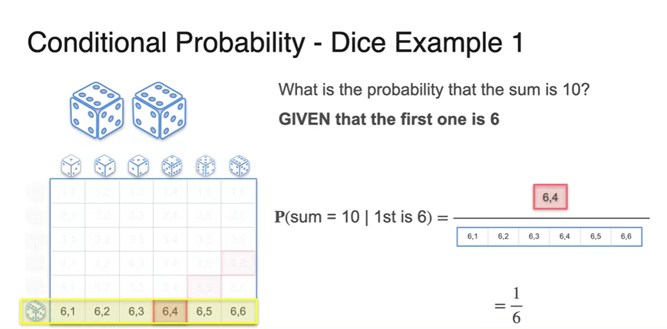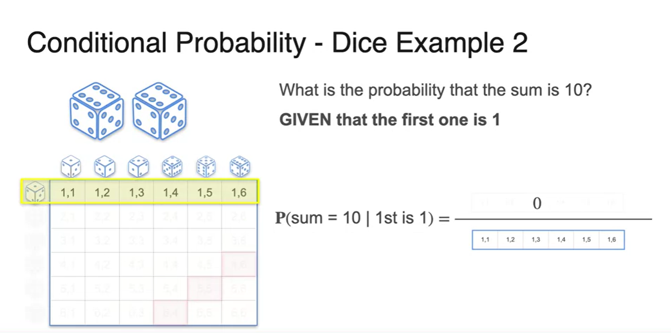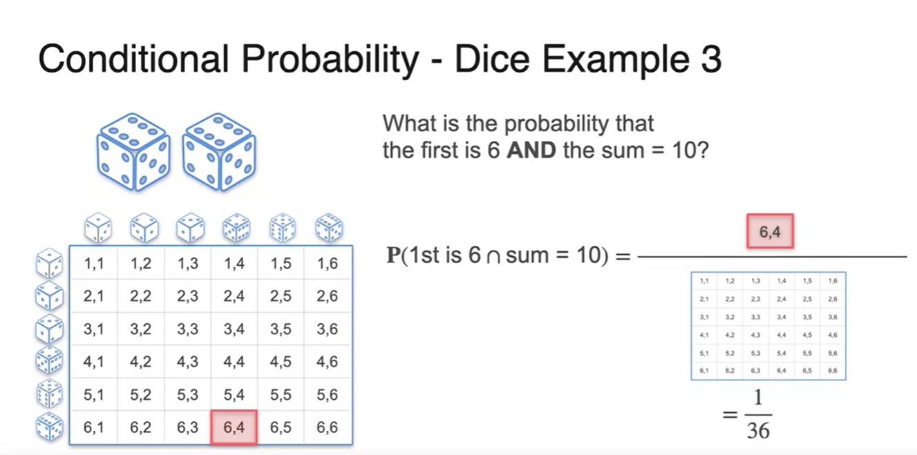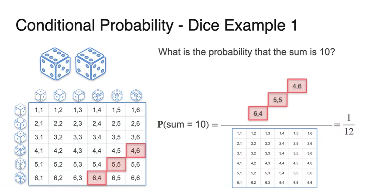 즉, 두 번의 주사위를 던졌을 때의 합이 10이 나올 확률은 얼마인가?