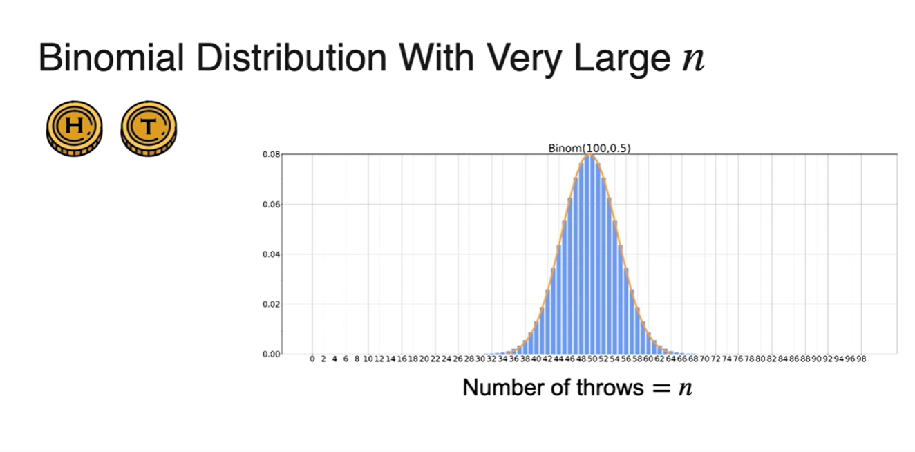 Binomial Distribution을 따르는 시행을 무한히 큰 에 대하여 시행했을 때의 분포는 아래와 같은 그래프 모양을 가진다.