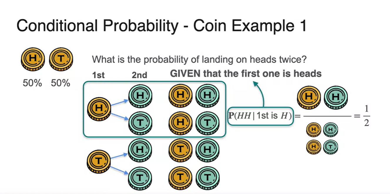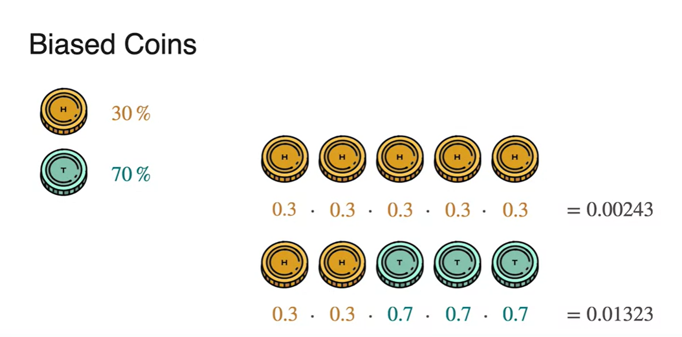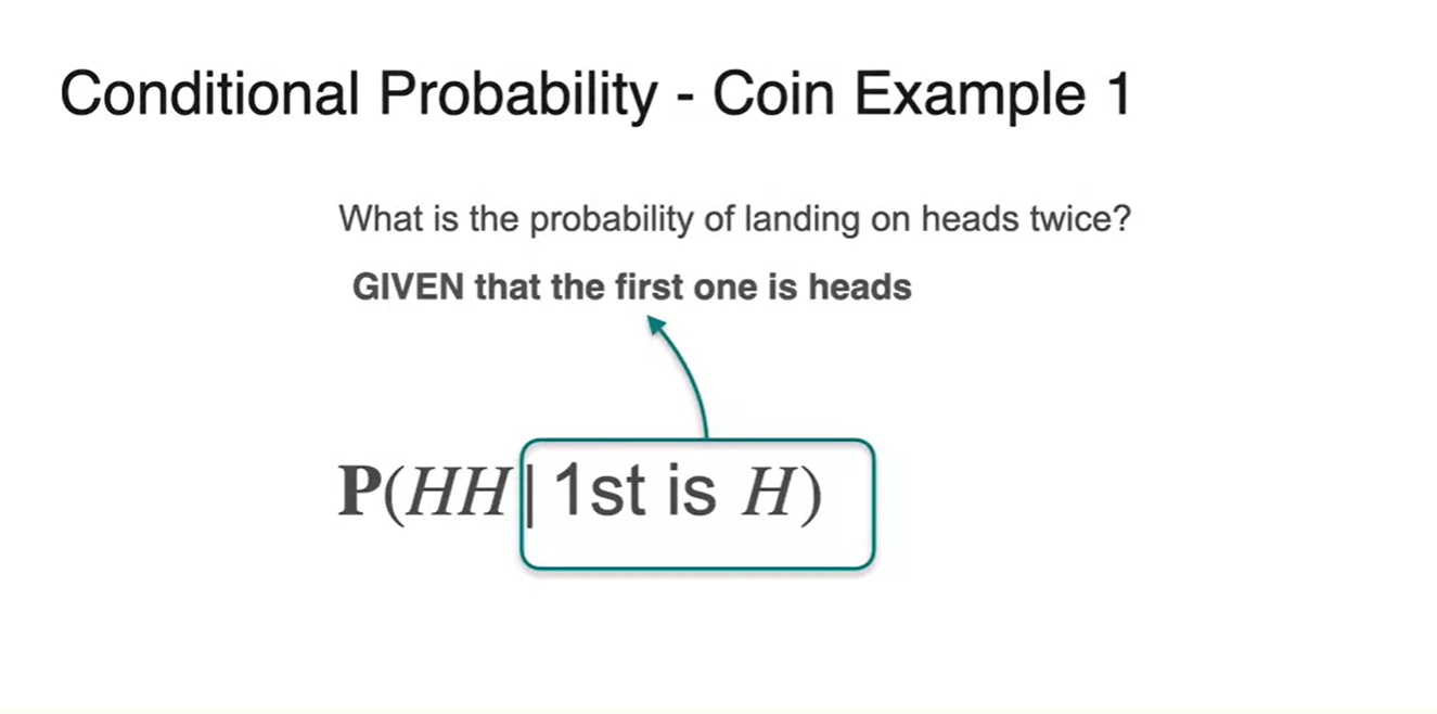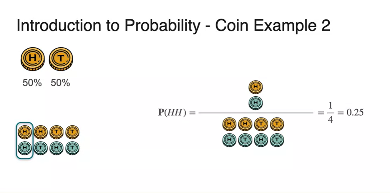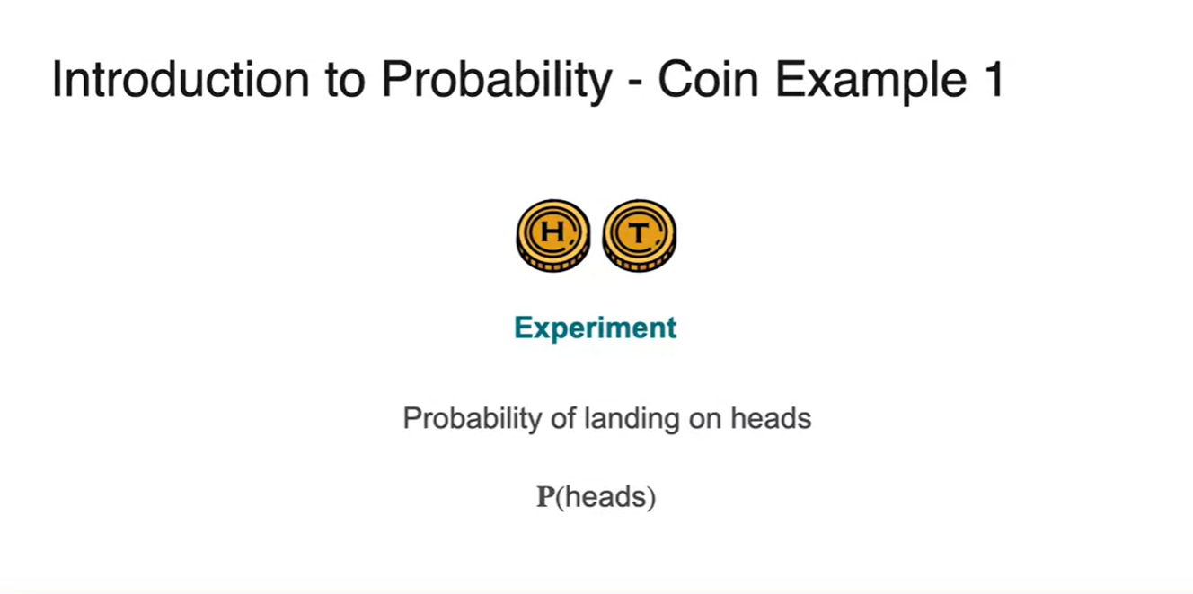 H와 T 두 가지 상황으로 experiment가 가능하며 우리가 찾고 싶은 확률은 heads만 나올 확률이다.