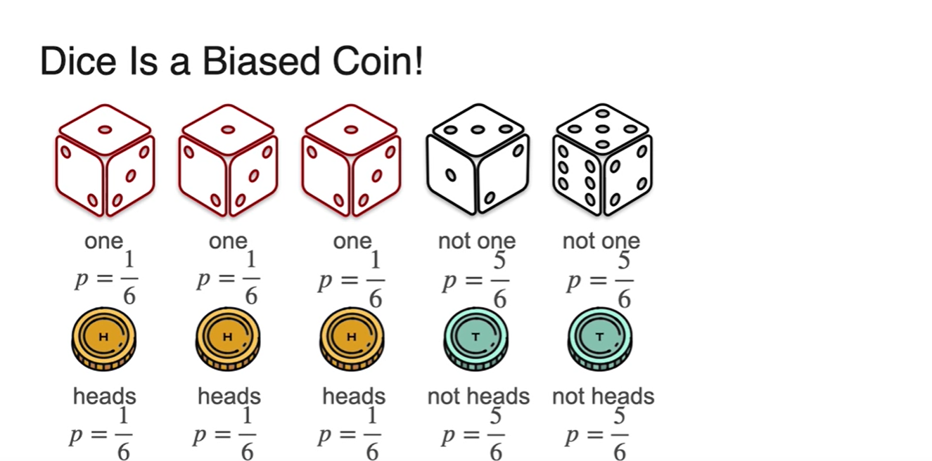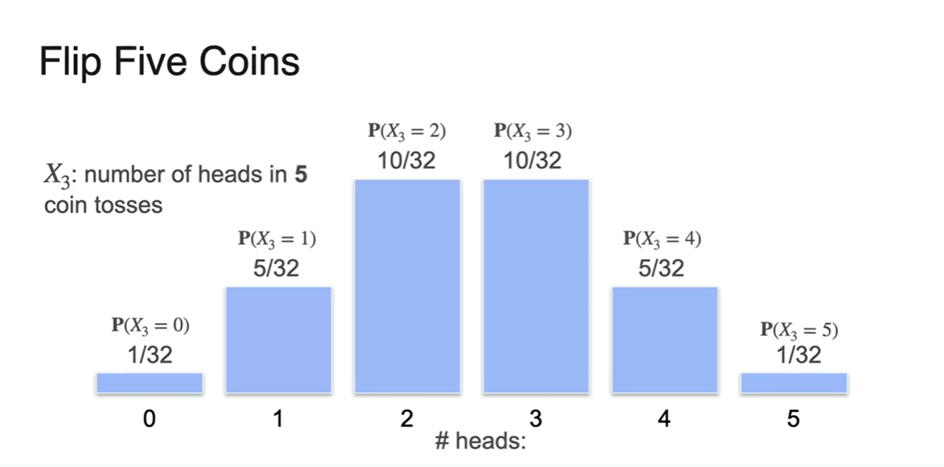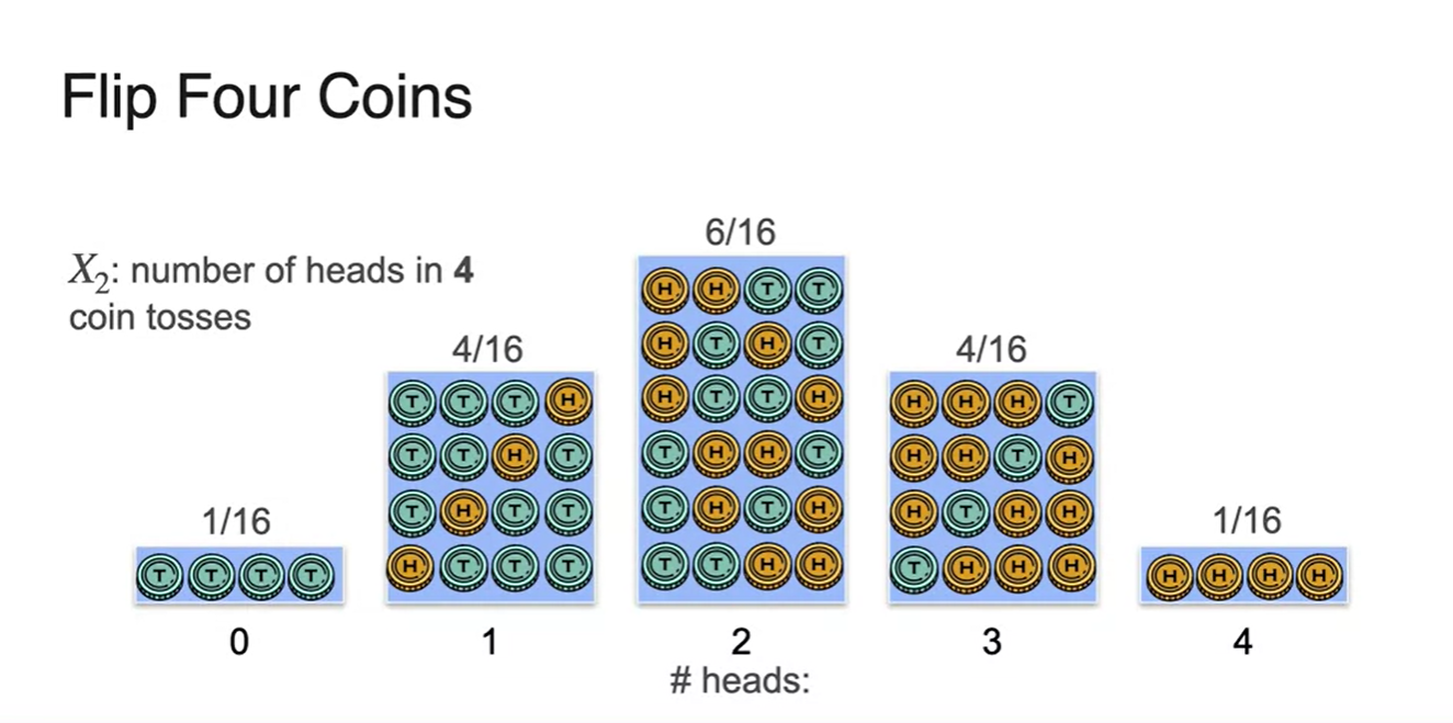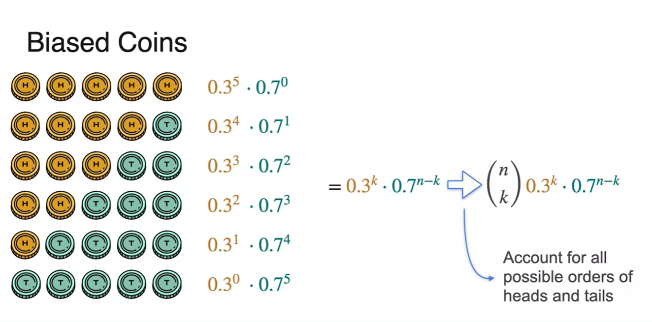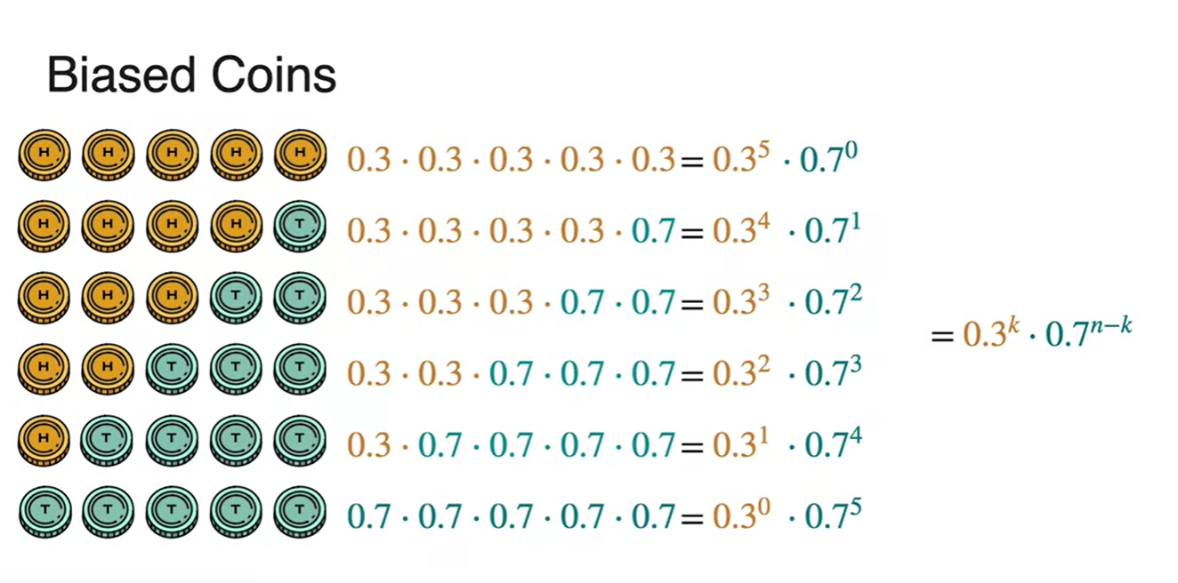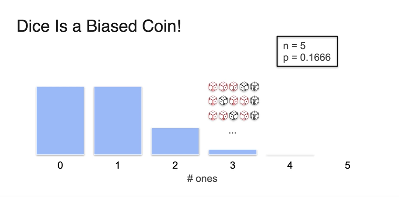 만약 Biased coin을 사용한다면 분포는 살짝 달라진다.