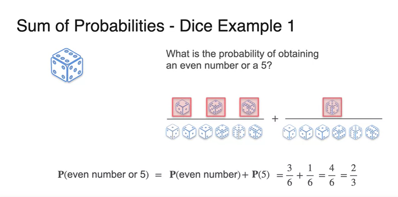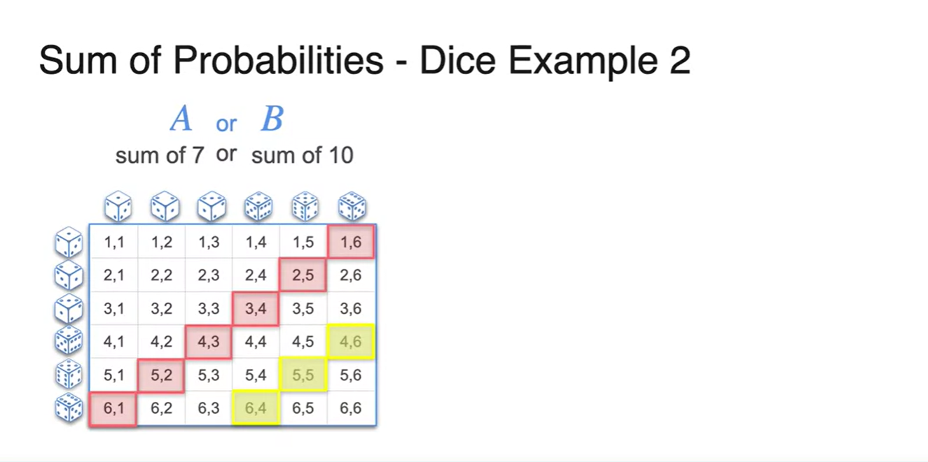 이번에는 dice example을 통해 disjoint event를 다뤄보자.