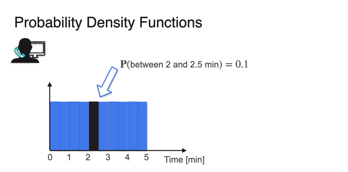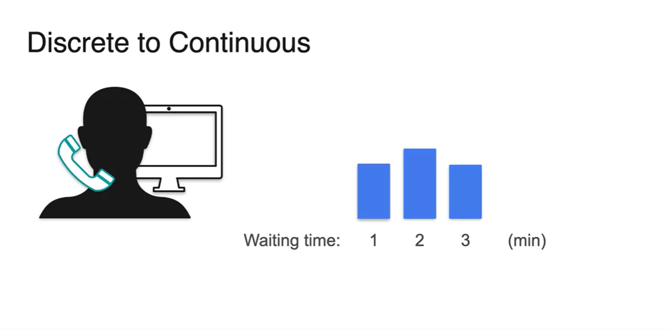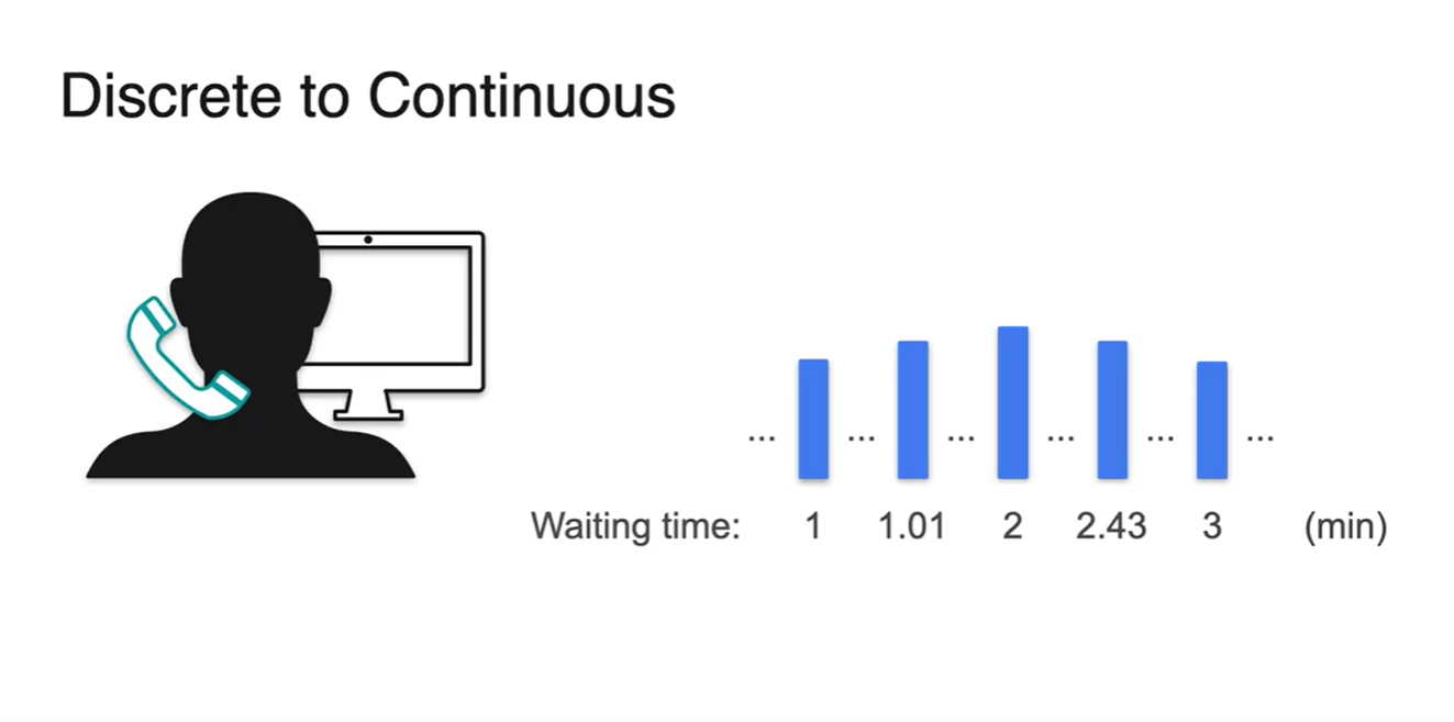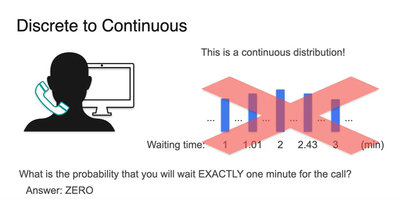 따라서 사실상 기다린 시간이 1분인 사람의 확률을 구하는 것은 거의 에 가깝다고 볼 수 있다.