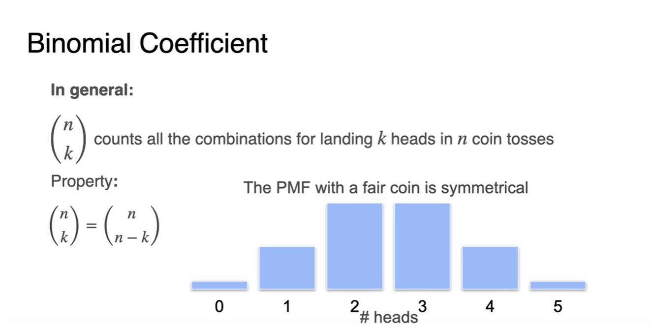 이는 로 나타내며 k를 선택하는 것과 그렇지 않은 n-k를 선택하는 경우가 동일하다.