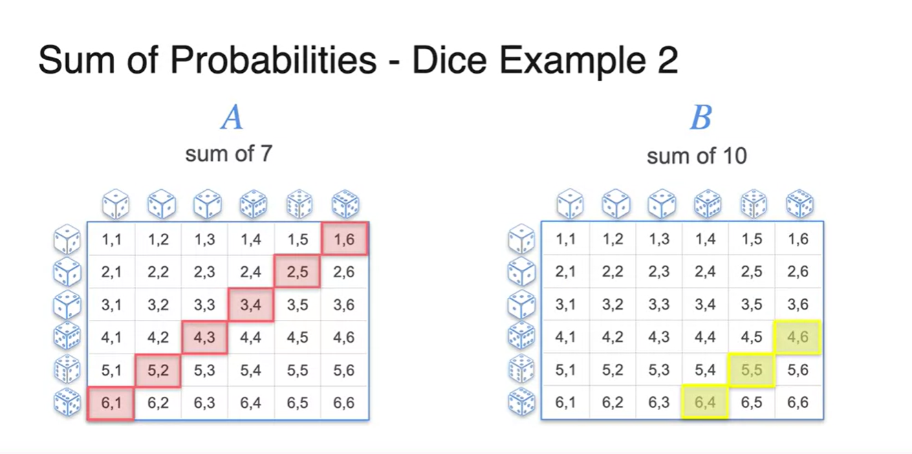 주사위 문제로 넘어와서, 두 주사위를 던지는 상황을 가정해보자.