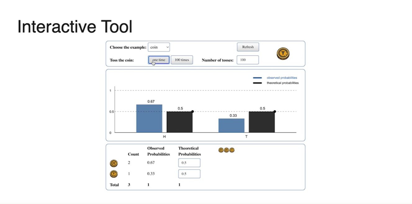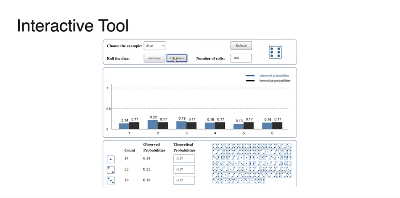 강의에서 제공된 Interative Tool을 이용해 100번의 시행으로 분포 함수를 그려보자.