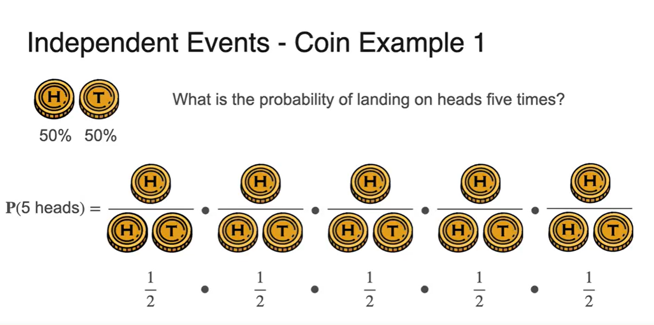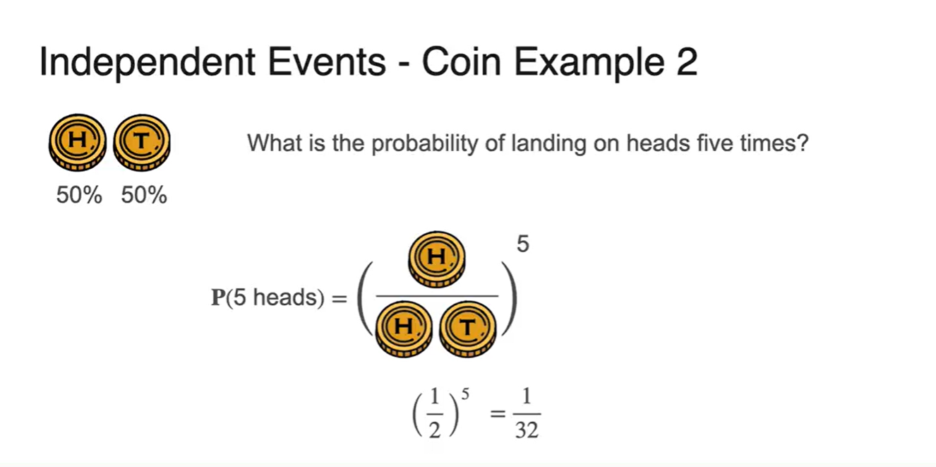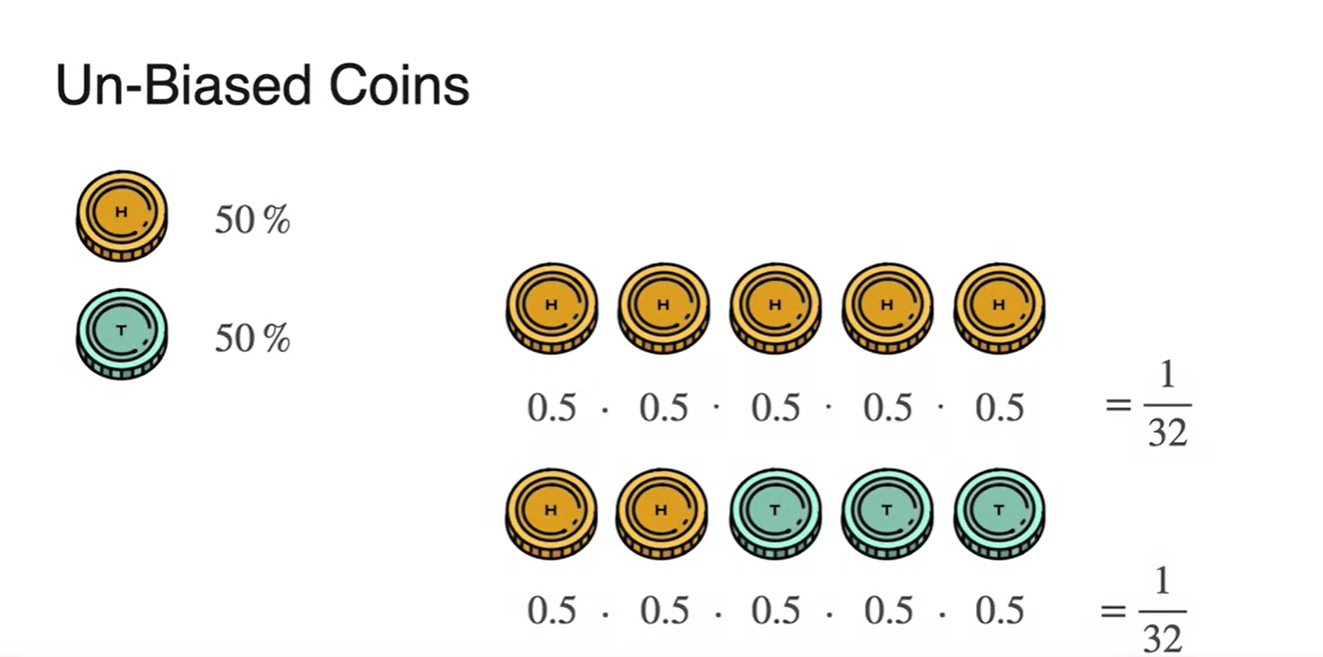 만약 5번 던졌을 때 모두 Head가 나올 확률은?