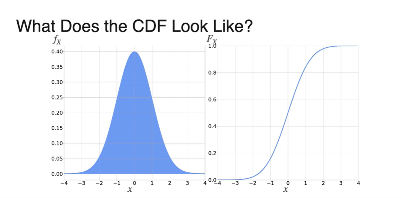 가 normal distribution을 따르기 때문에 해당 그래프의 구간 적분 값이 의 CDF다.
