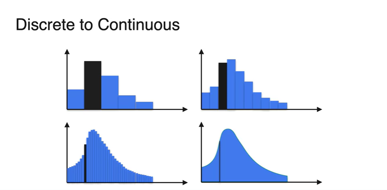 확률 변수를 계속해서 잘게 쪼개다 보면 아래 그림과 같이 smooth한 함수로 그래프가 그려진다.
