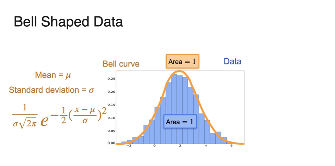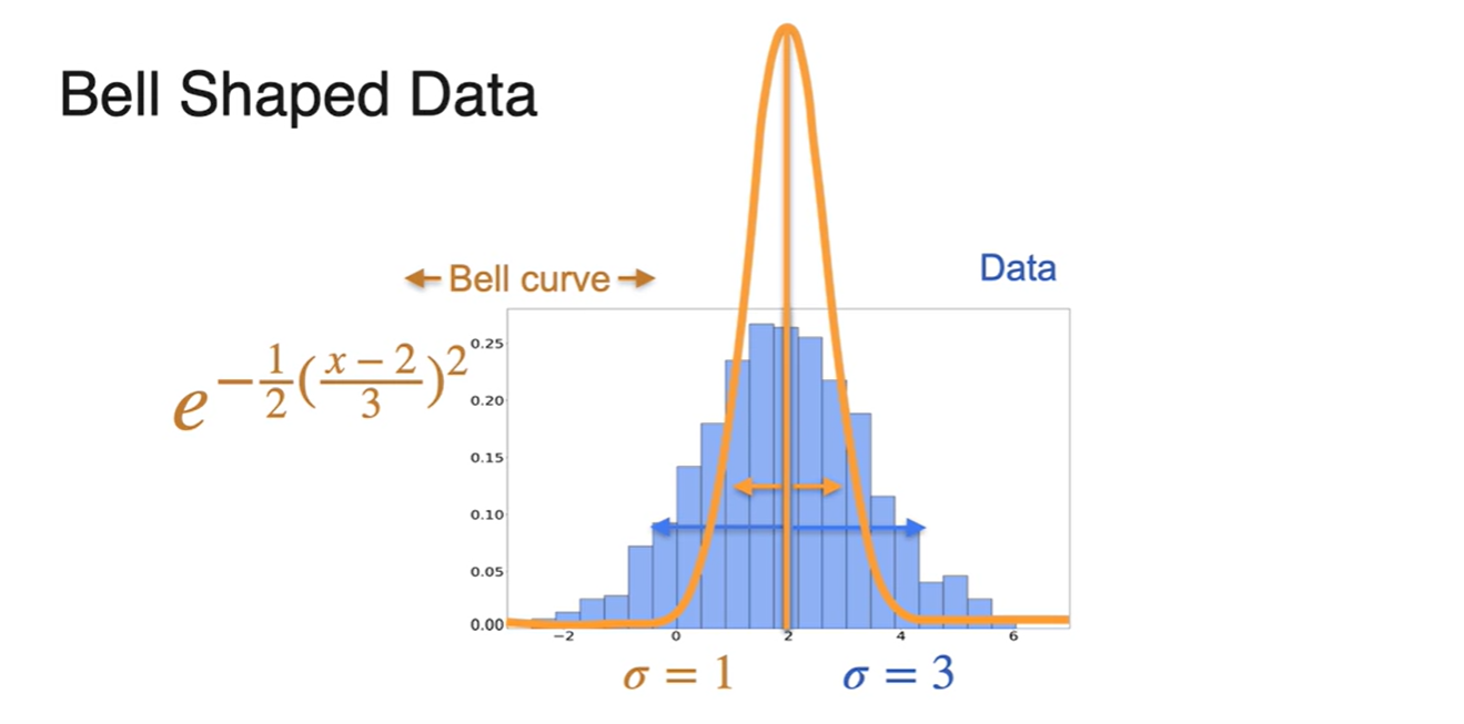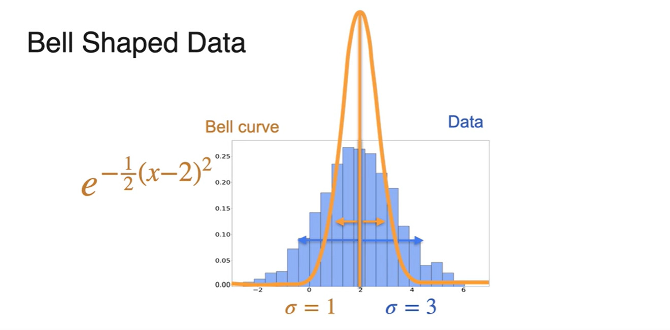 이와 같은 Bell shaped curve 그래프가 Normal distribution의 그래프 형태와 비슷한 모양을 갖는다.