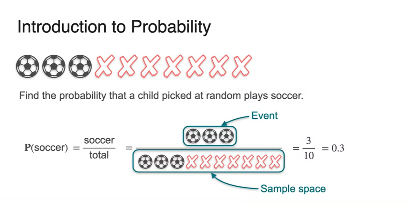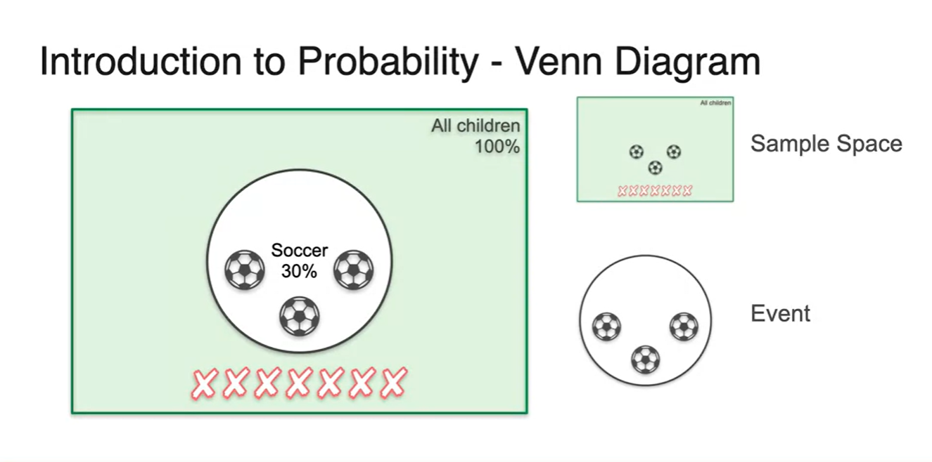 특정 사건을 나타내는 축구공을 뽑는 경우의 수 event는 sample space의 일부를 차지한다.