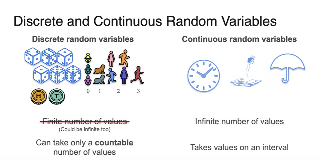 Random variables는 Discrete vs. Continous한 경우로 나뉜다.