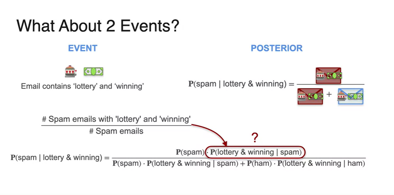 사건이 서로 독립적일 때에 두 사건의 교차 확률은 로 전개된다.