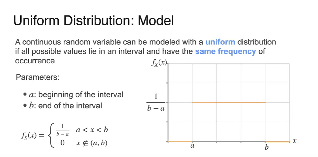 Uniform distribution의 parameters는 각 구간의 endpoint 와 이다.