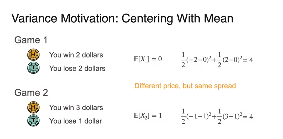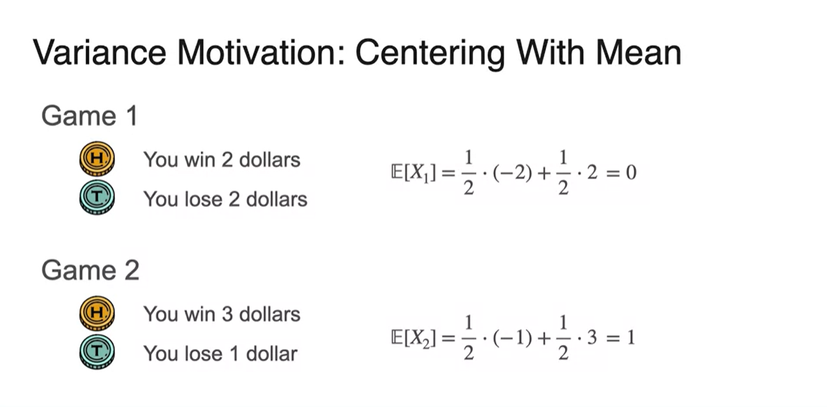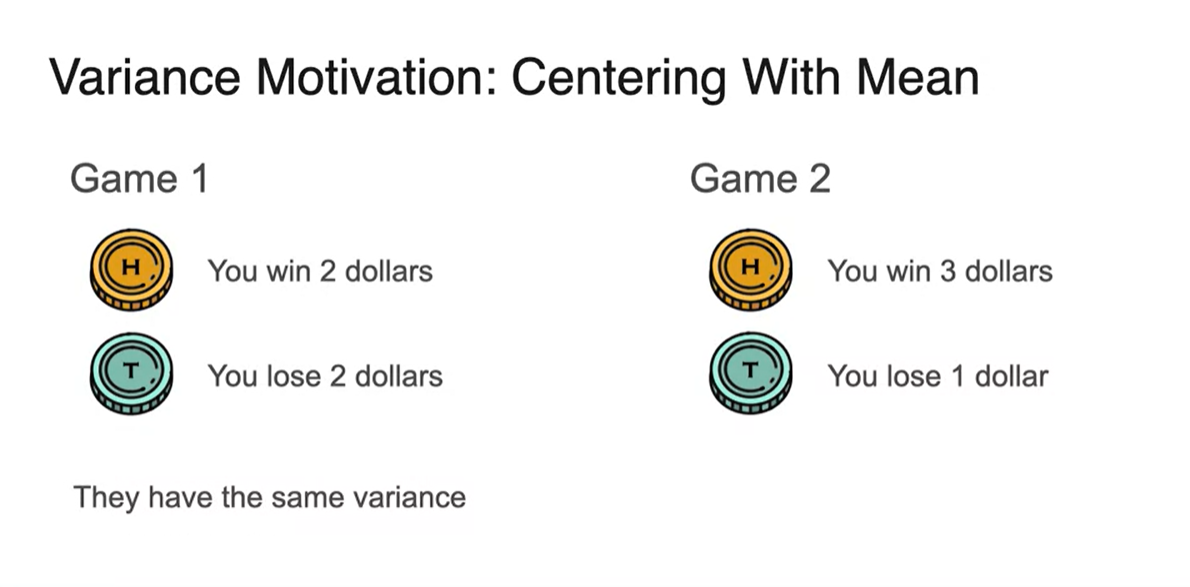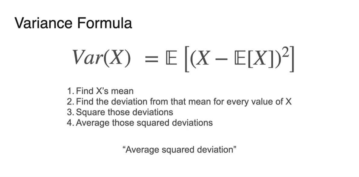 따라서 우리는 편차 제곱의 평균으로 variance를 정의한다.