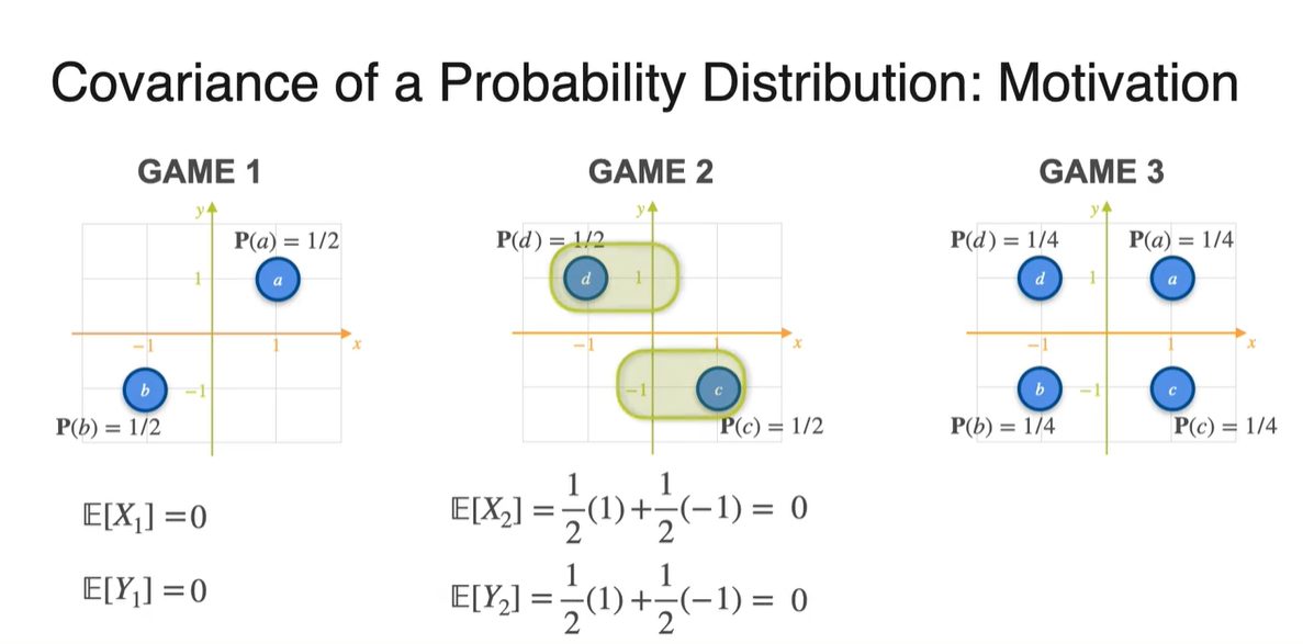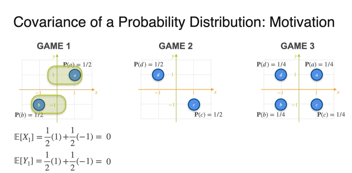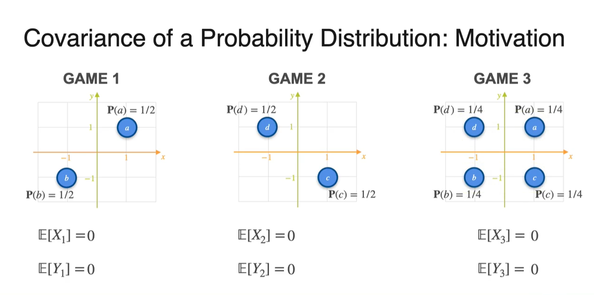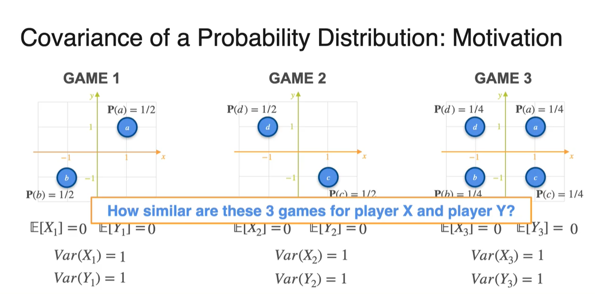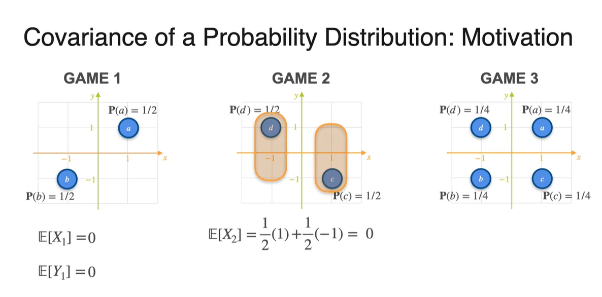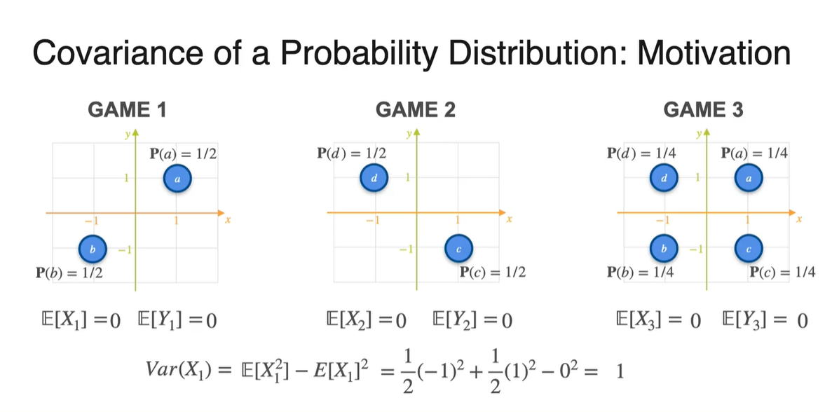 아래와 같은 Game 1, 2, 3의 분포가 주어졌을 때 Covariance를 구해보자.
