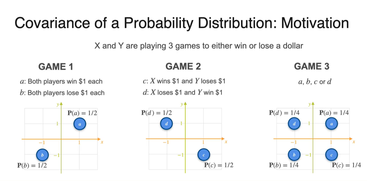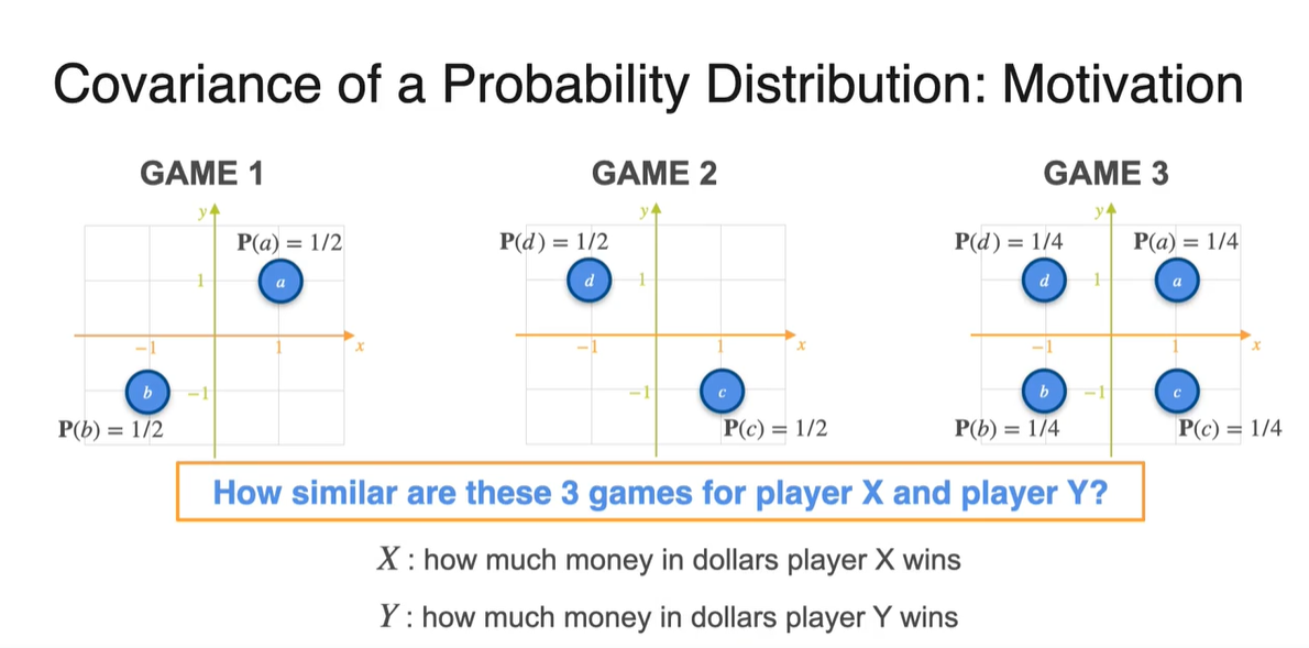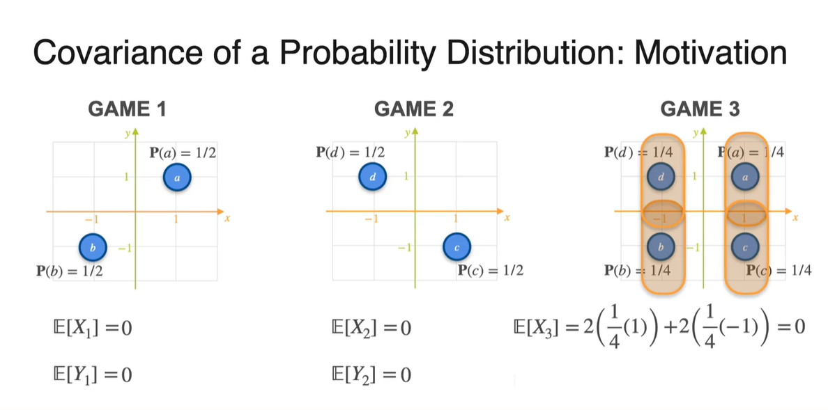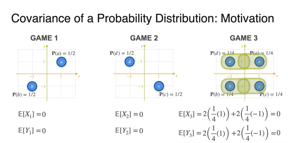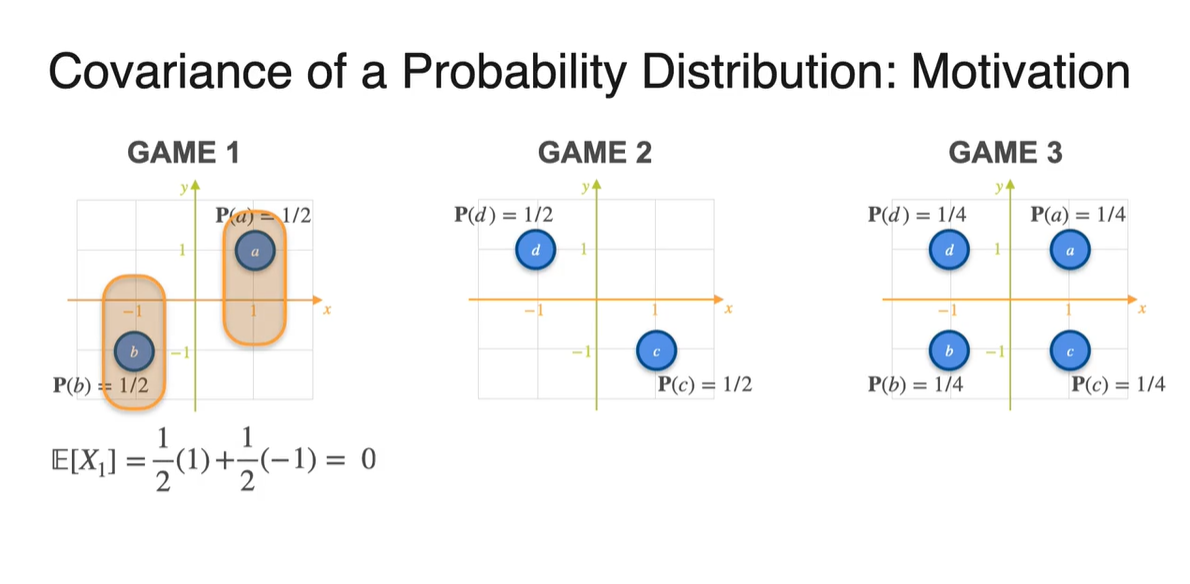 아래와 같은 Game 1, 2, 3의 분포가 주어졌을 때 Covariance를 구해보자.