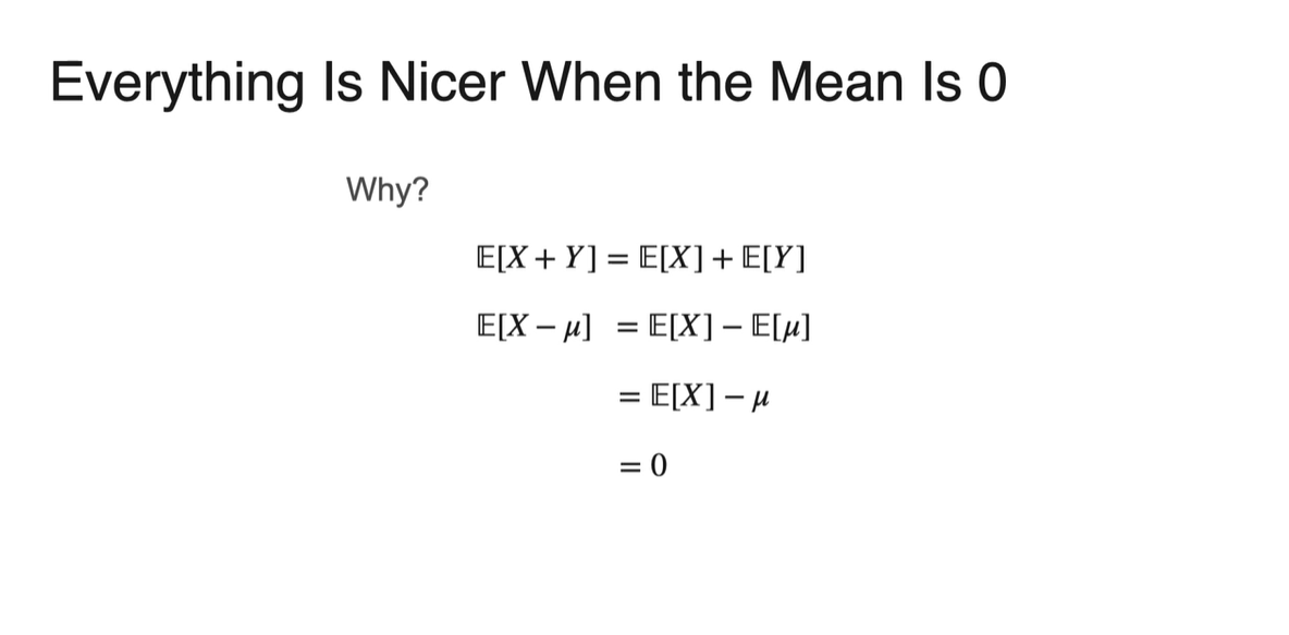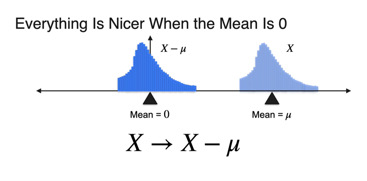 기존 확률 변수 에 기댓값 를 빼면 평균은 항상 0이다.