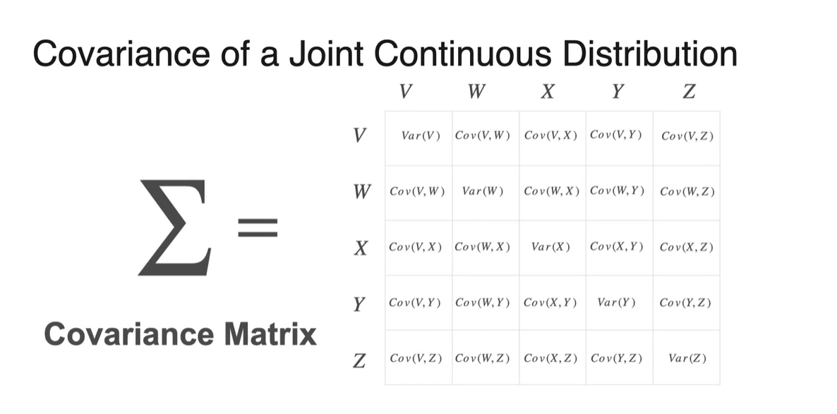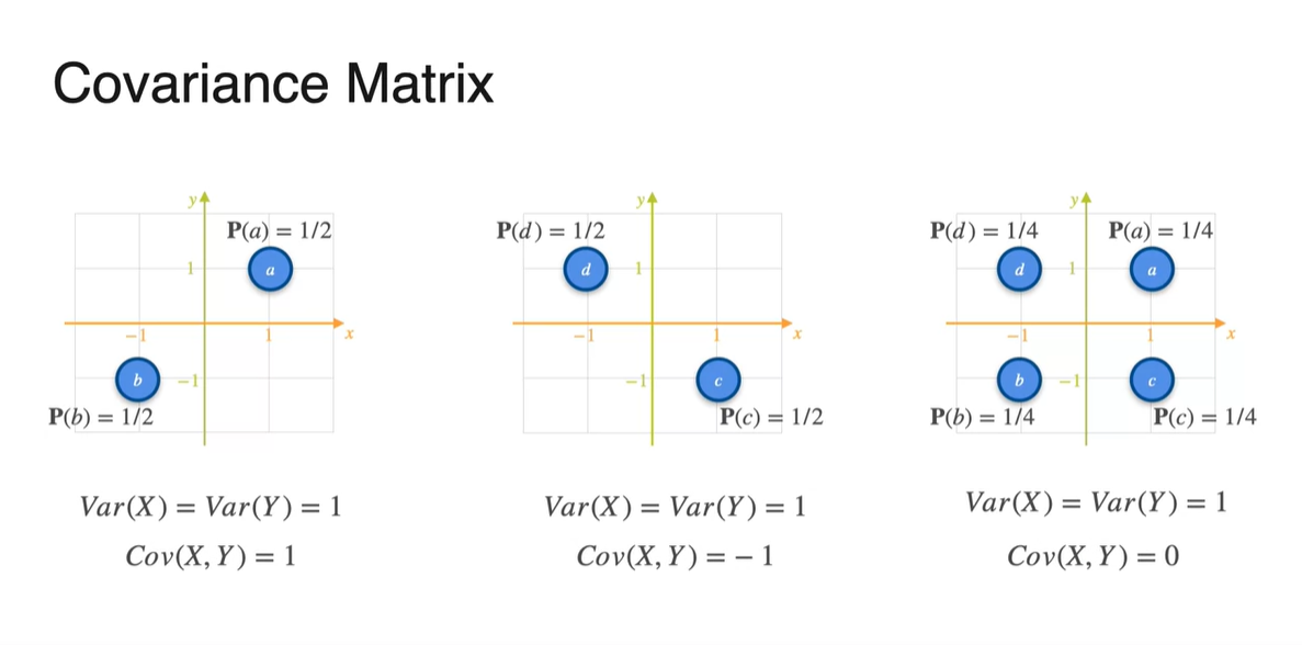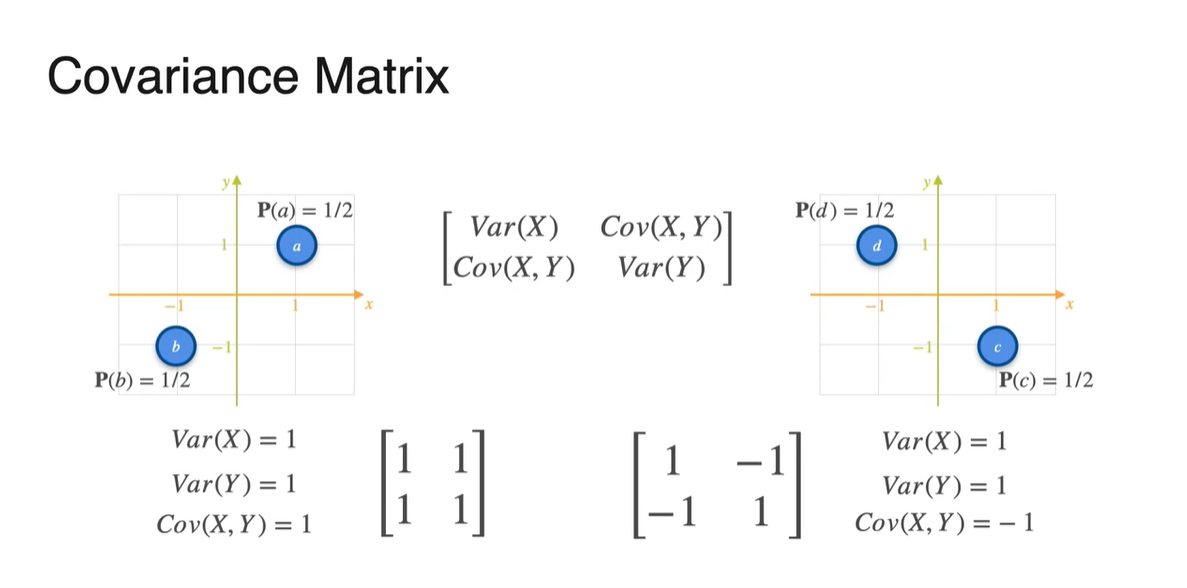 확률 변수가 와 로 2가지일 때, Covariance matrix는 다음과 같이 쌓아진다.
