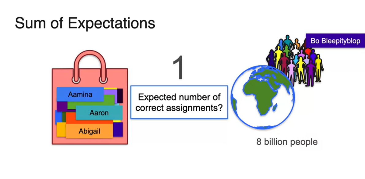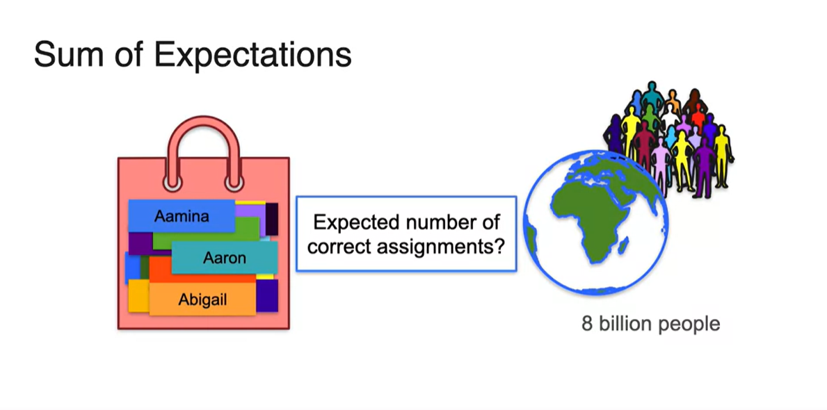전 세계 80억명의 사람 이름이 unique하다고 가정하여, 이들의 이름이 들어있는 bag에서 각자 이름을 뽑는 상황이라고 생각해보자.