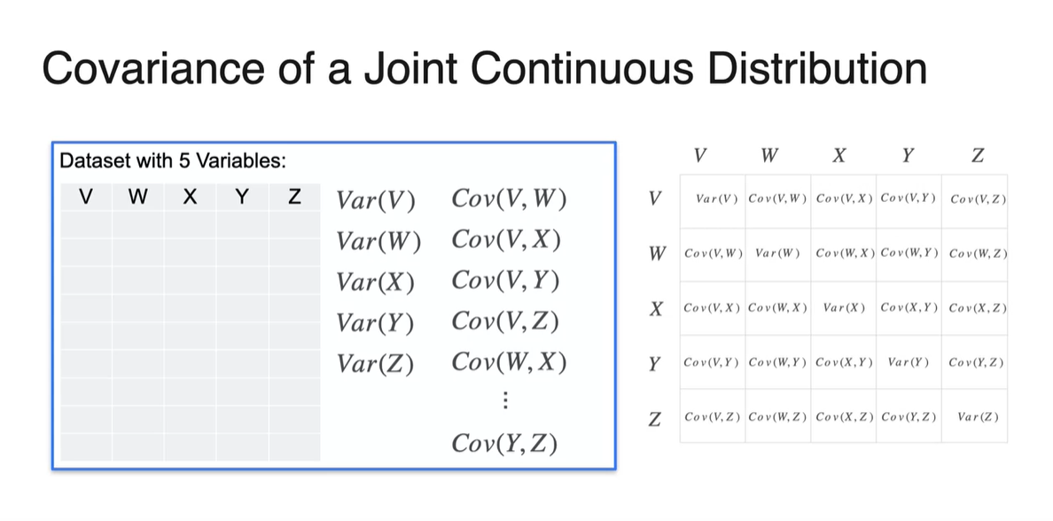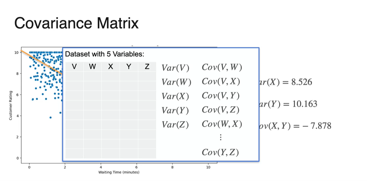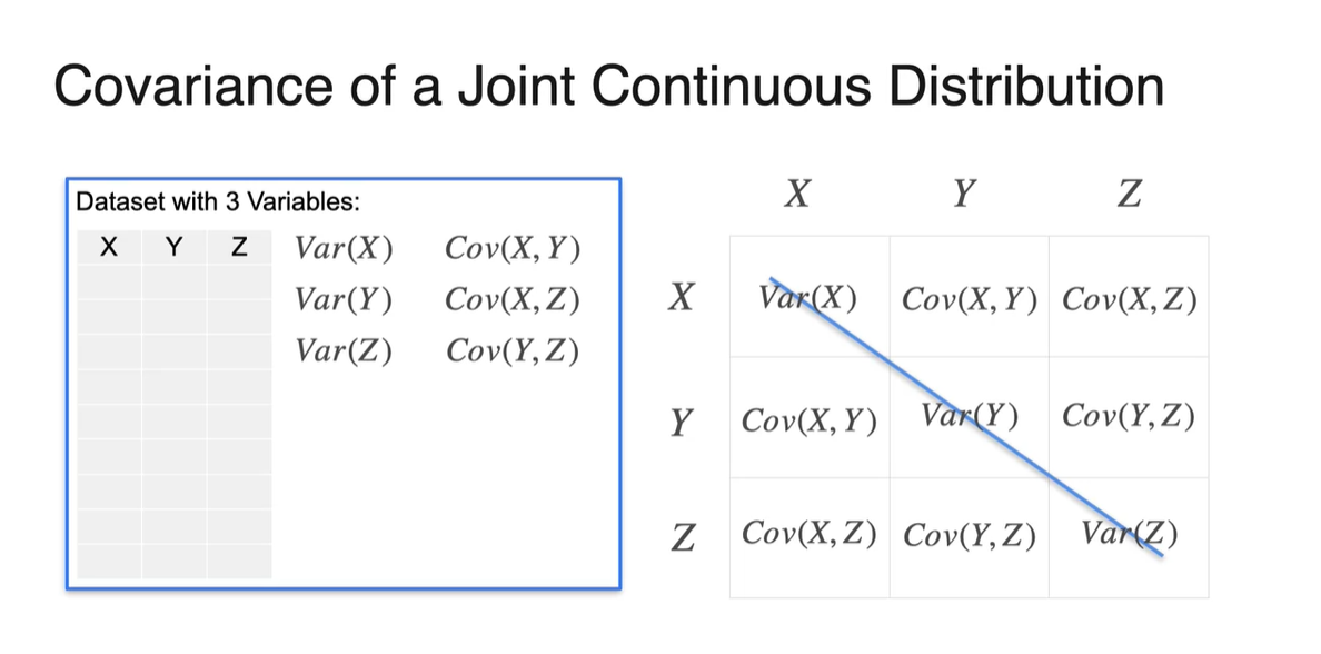Diagonal 항은 독립 변수의 Variance, 다른 항은 Covariance다.