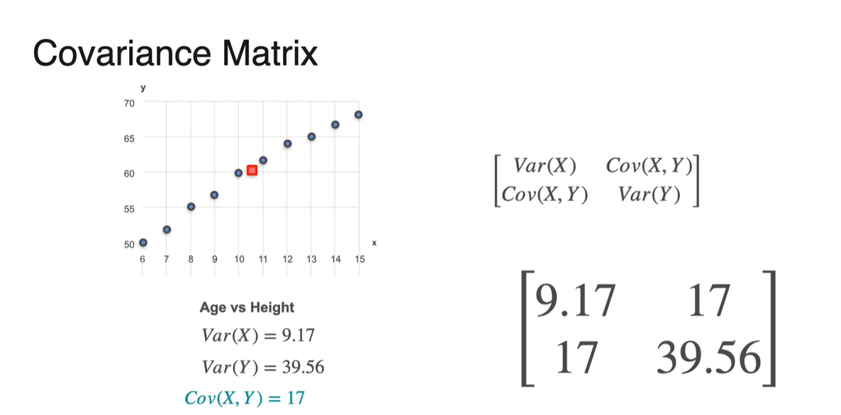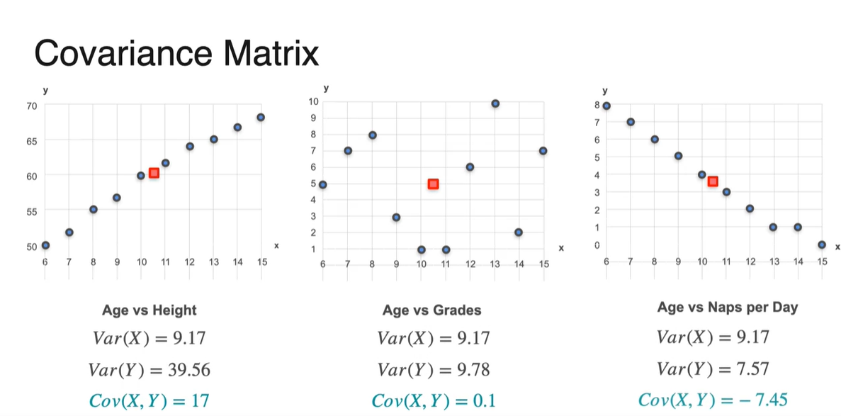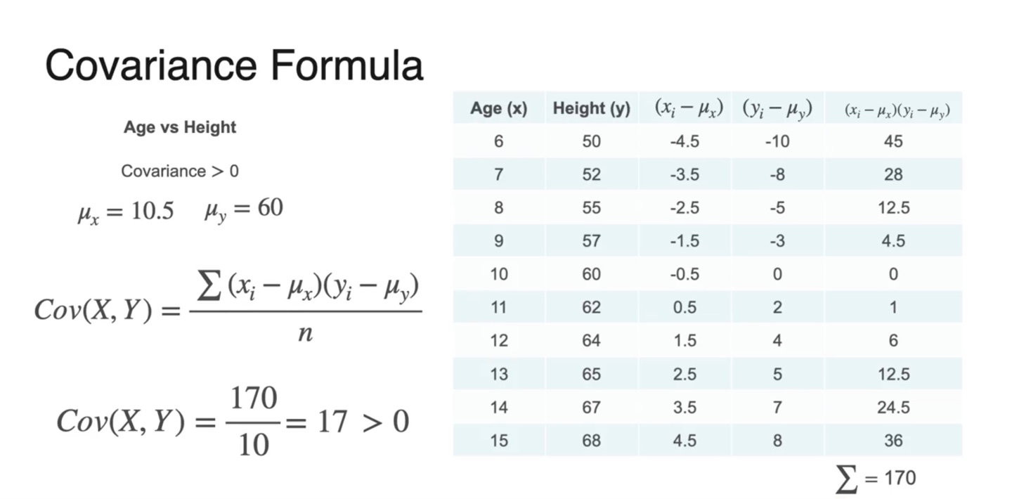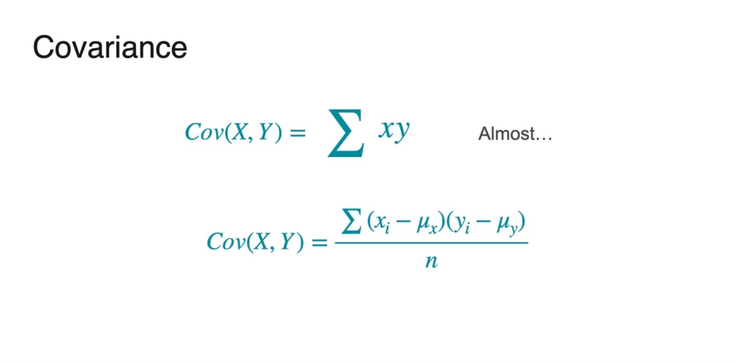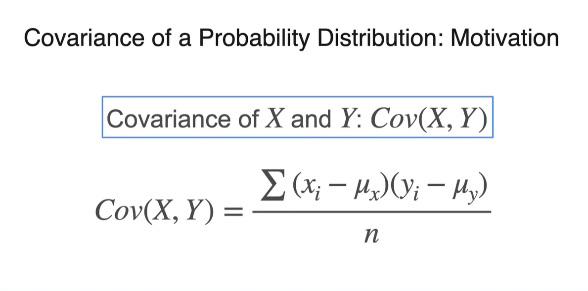 Covariance는 모든 데이터 샘플들의 평균으로부터의 차이를 더해서 평균낸 값이다.
