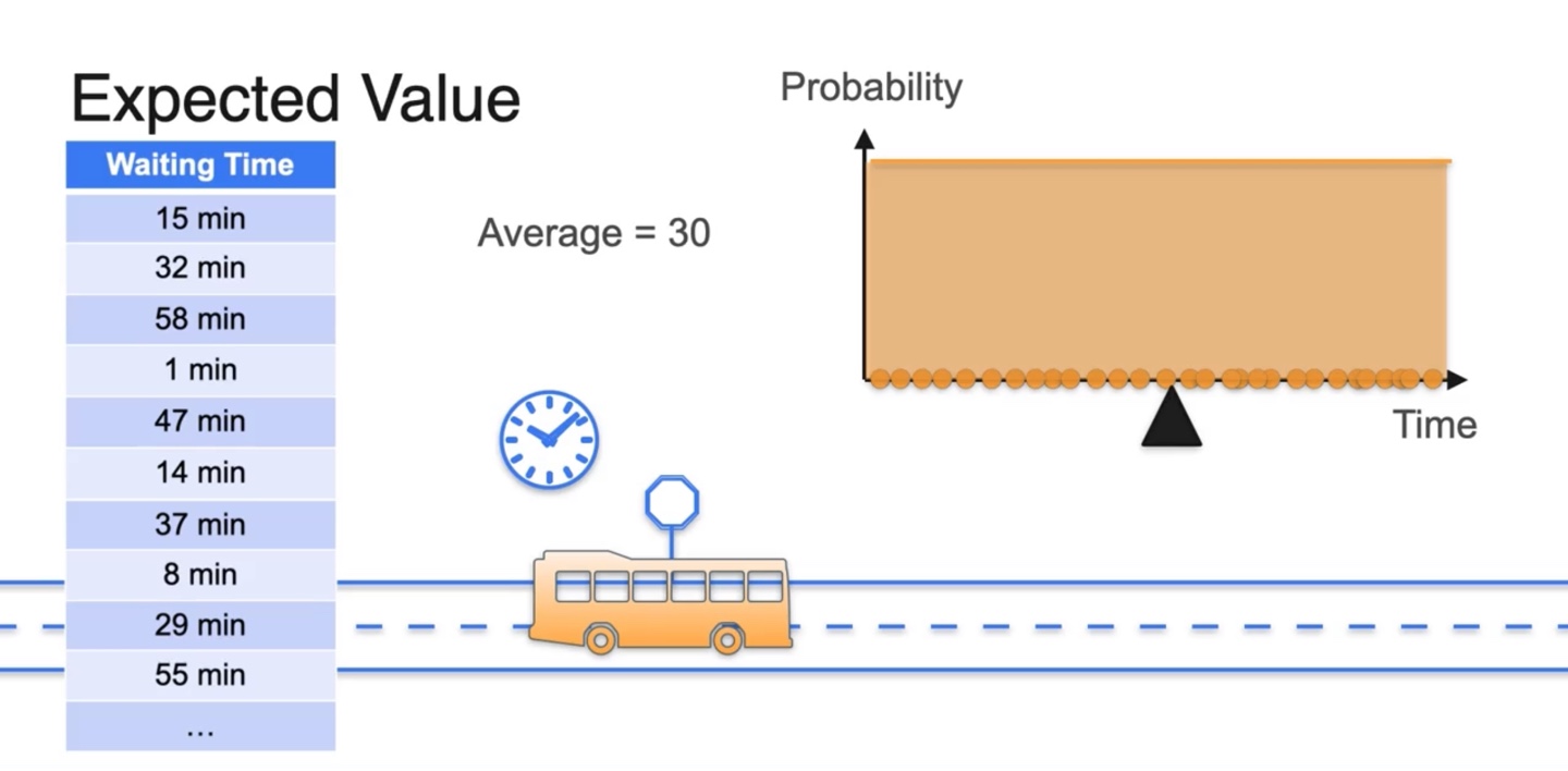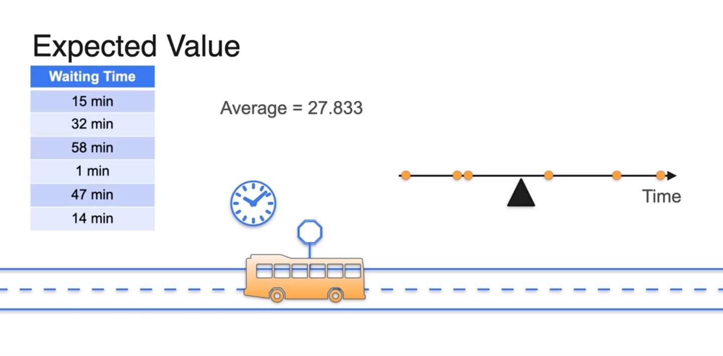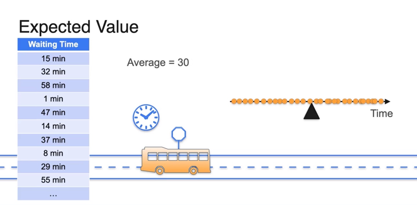 버스 기다린 시간을 하루 하루 측정하여 전체 기다린 시간의 평균값이 얼마인지 구해보고 싶다고 하자.