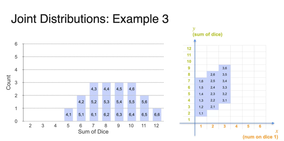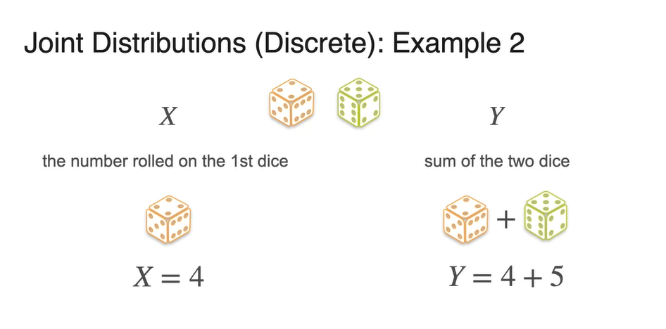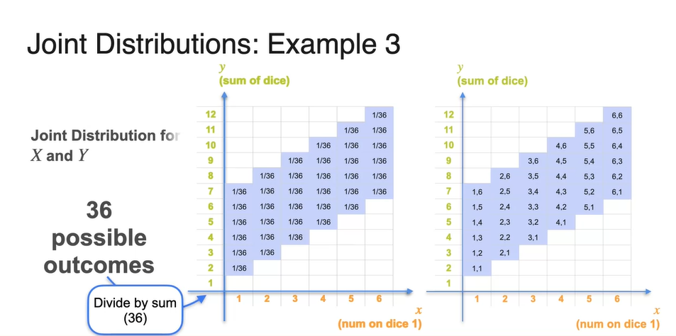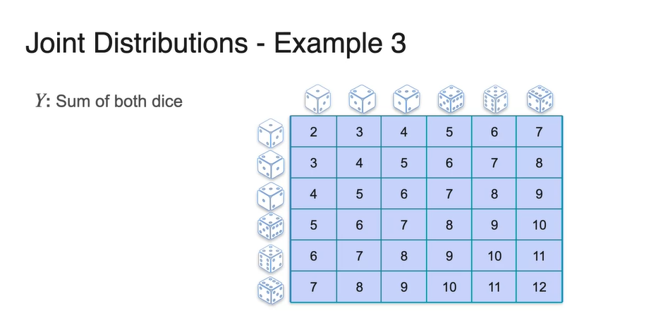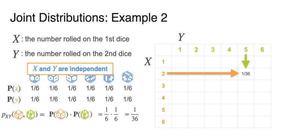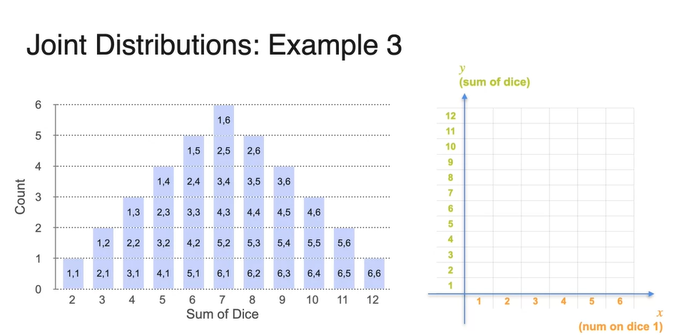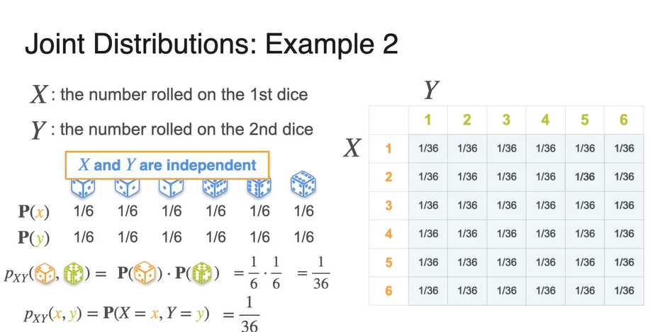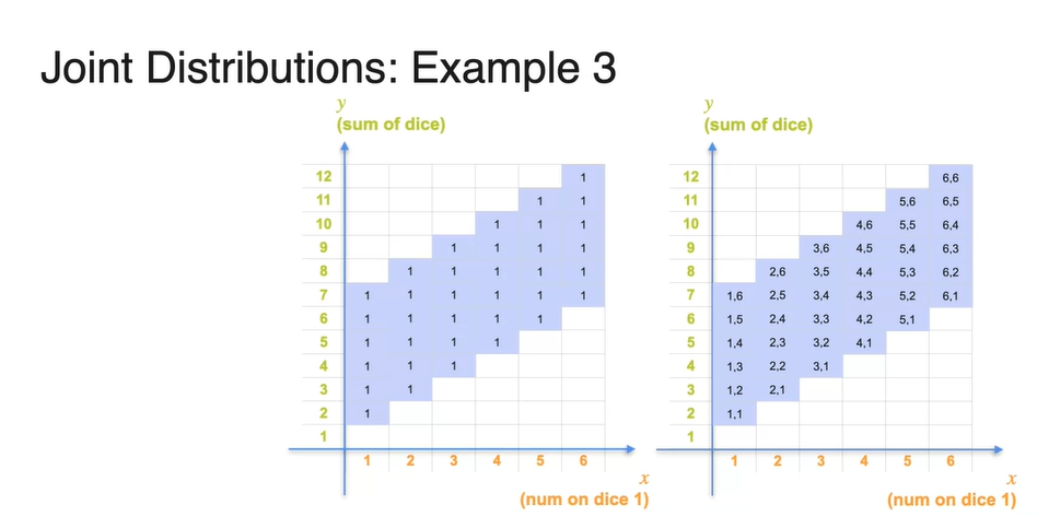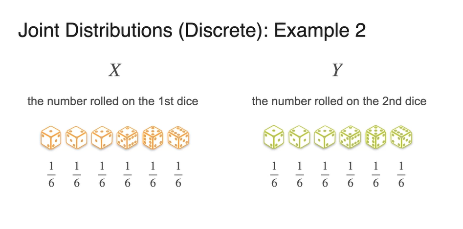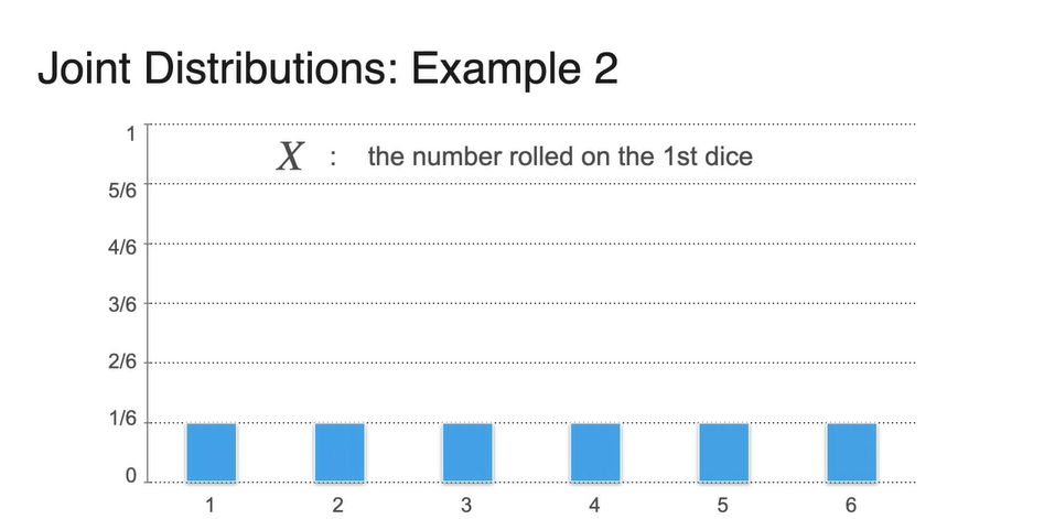 이번에는 1번 주사위를 굴렸을 때의 number를 확률 변수 , 2번 주사위를 굴렸을 때의 number를 확률 변수 로 설정해보자.