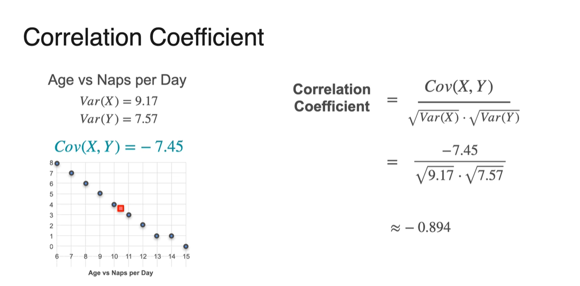 이제 위 예제의 Covariance로 Correlation Coefficient를 계산해보자.