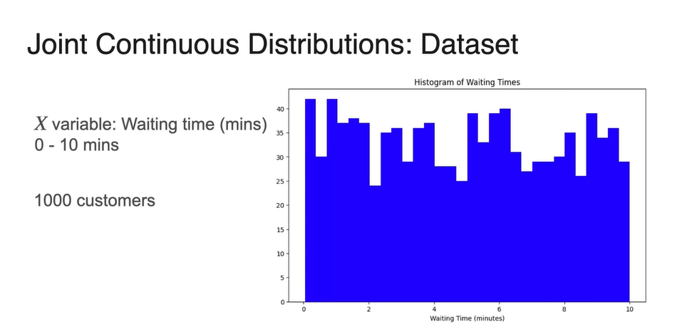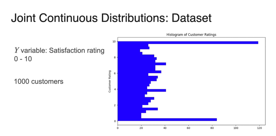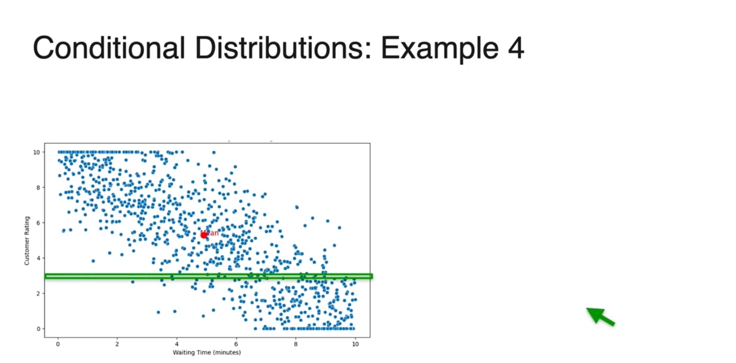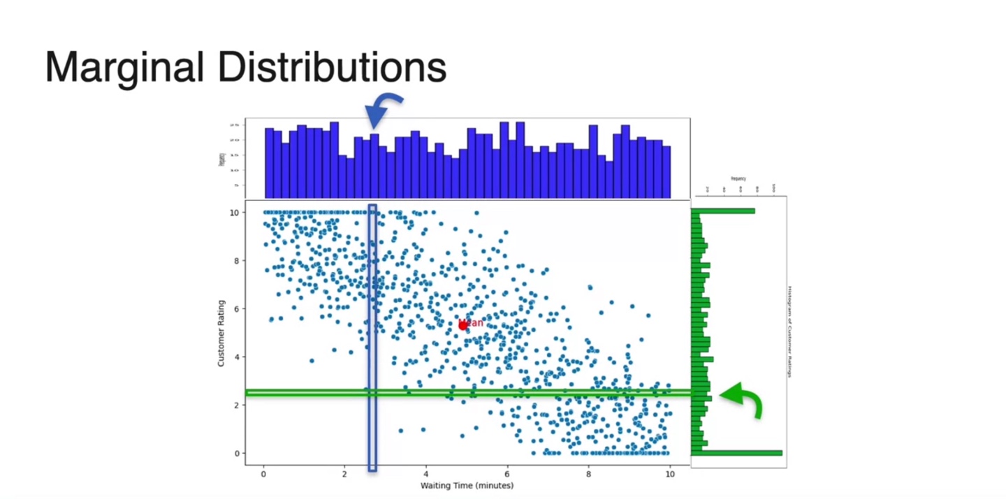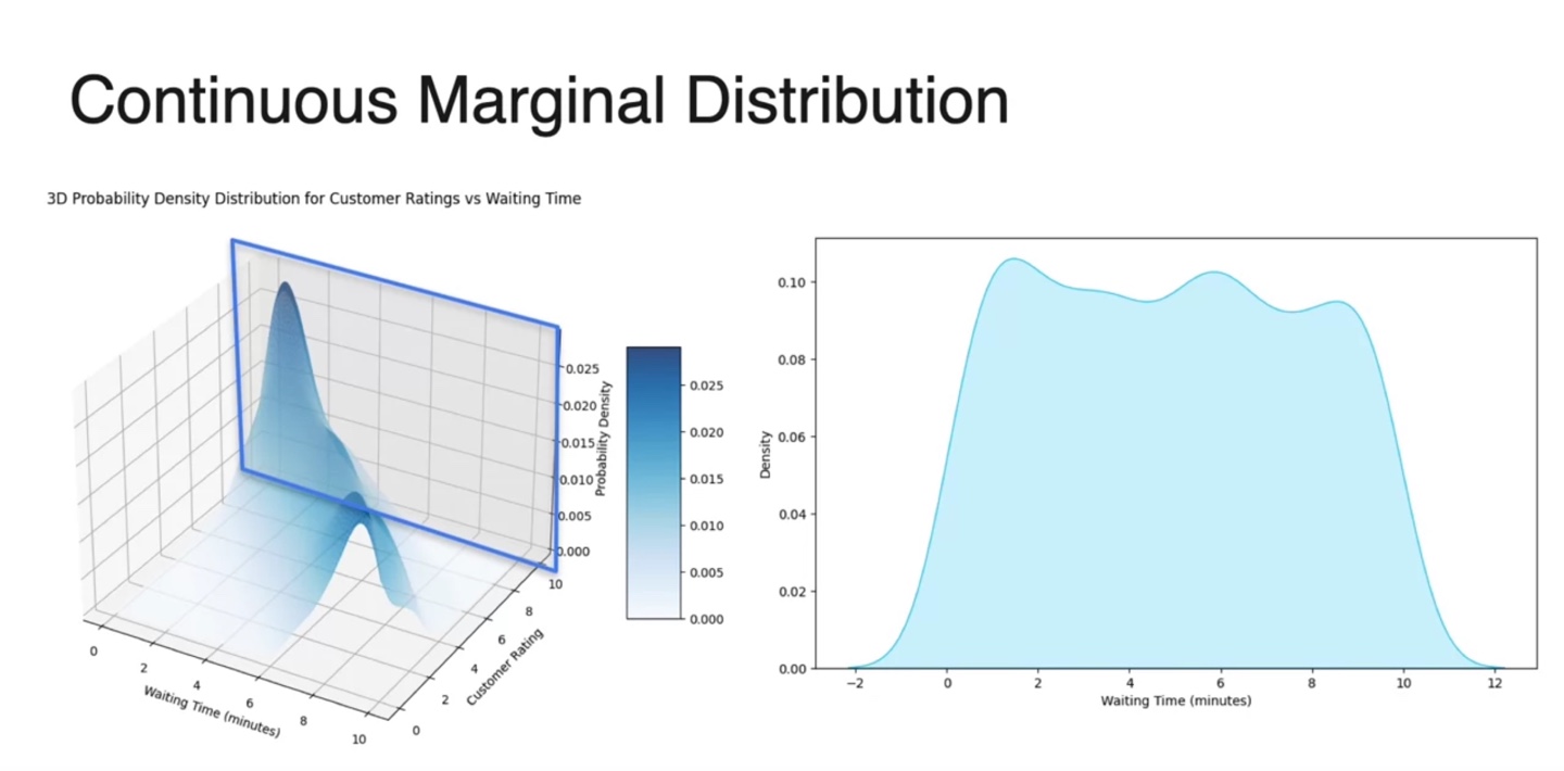 Waiting Time()의 marginal 분포는 Customal Rating() 변수를 무시하고 얻어지는 모든 probabilities의 합이다.