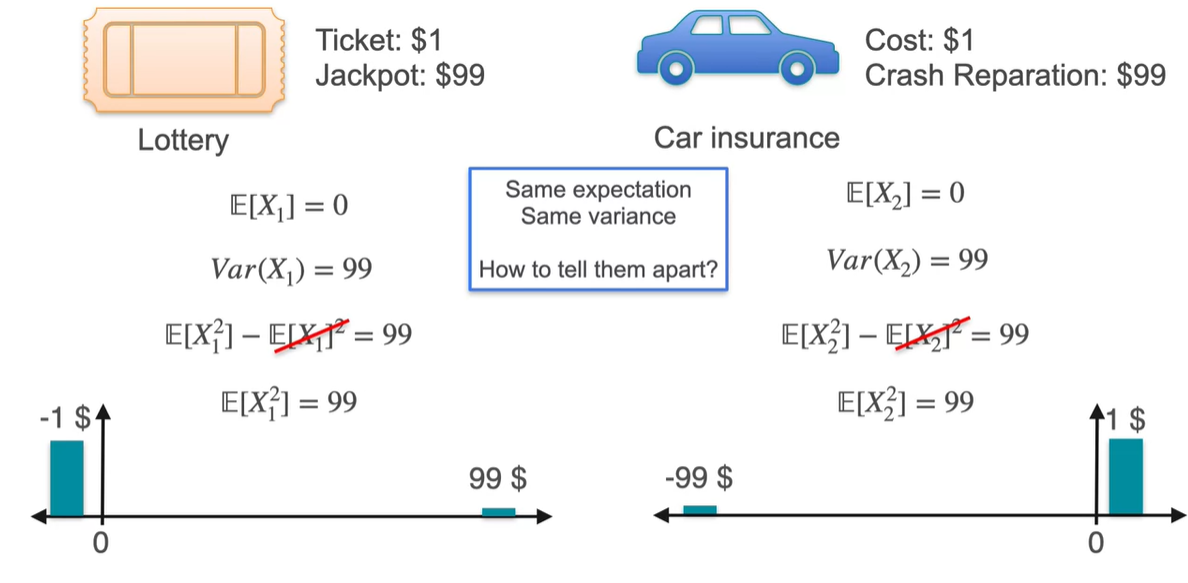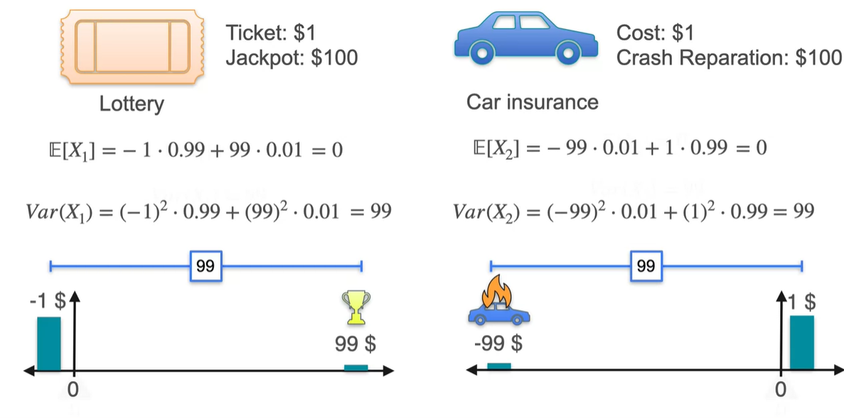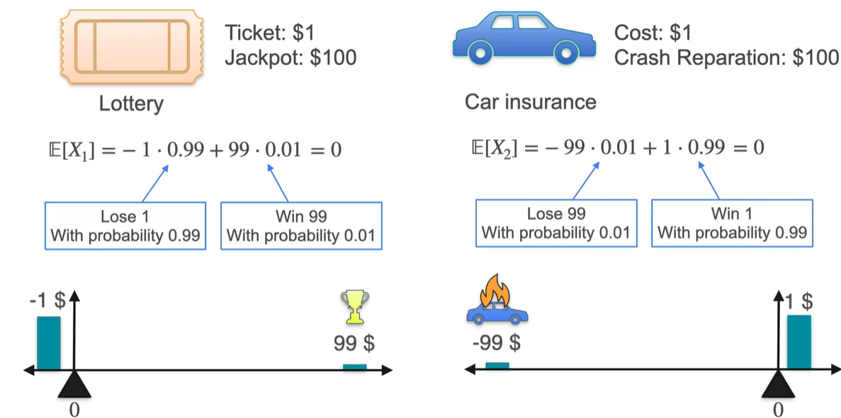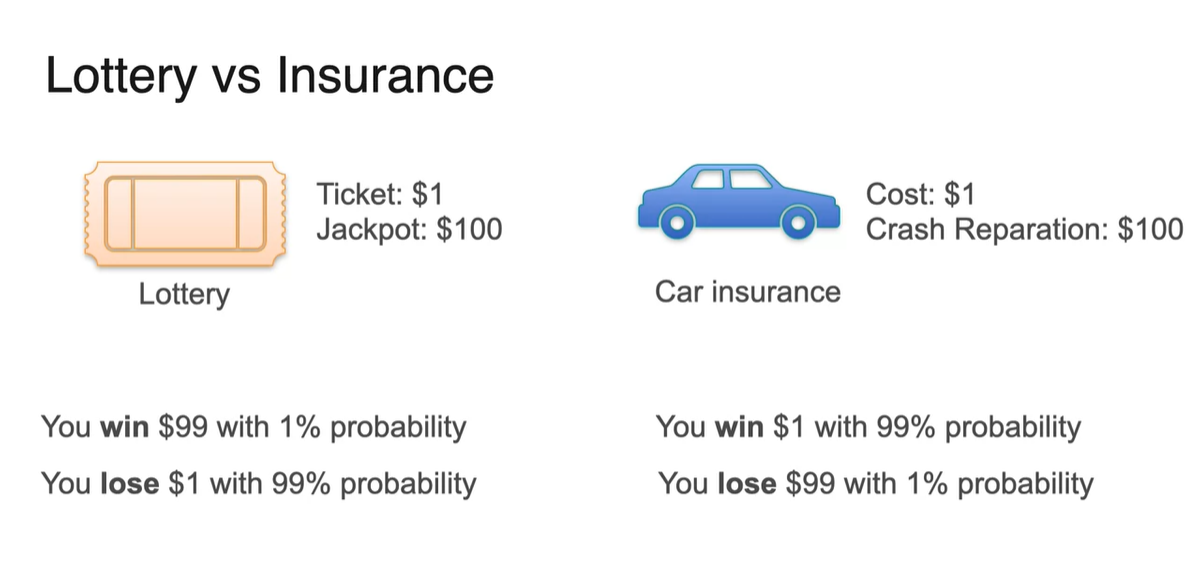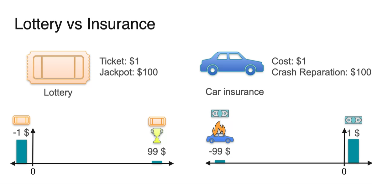 Lottery에 당첨되는 상황과 Car insurance 보험 적용을 받을 때의 상황을 가정해보자.