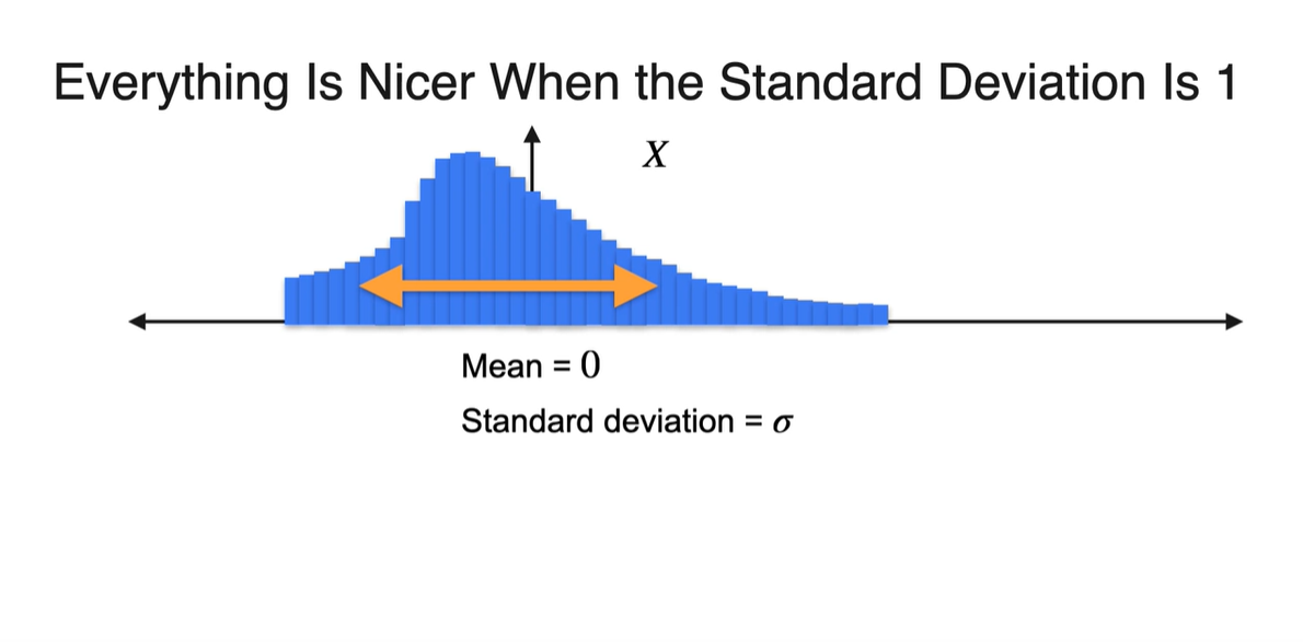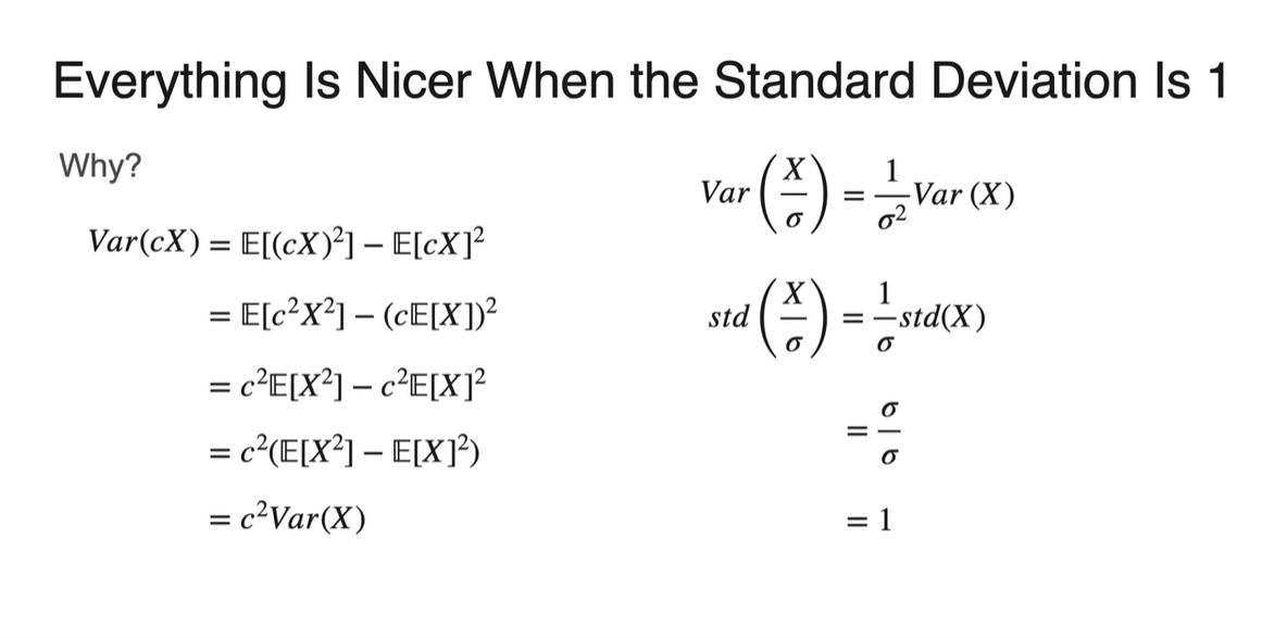 In general: 인 선형 변환을 거친 확률 변수의 분포는 기댓값과 분산(표준 편차)의 선형 변환으로도 표현 가능하다.