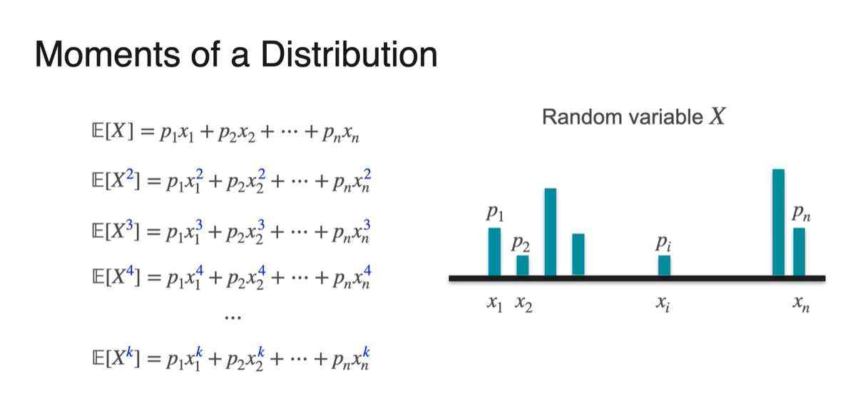 각 확률 변수(random variable)은 , 확률(weight)은 이 되어 기댓값이 계산된다.