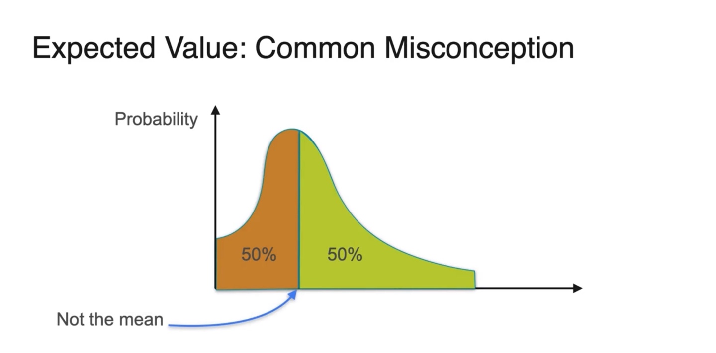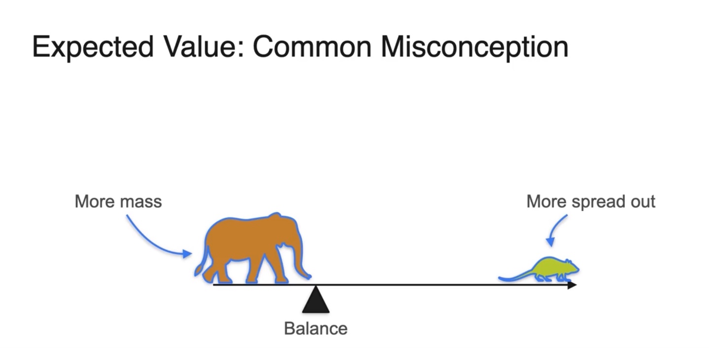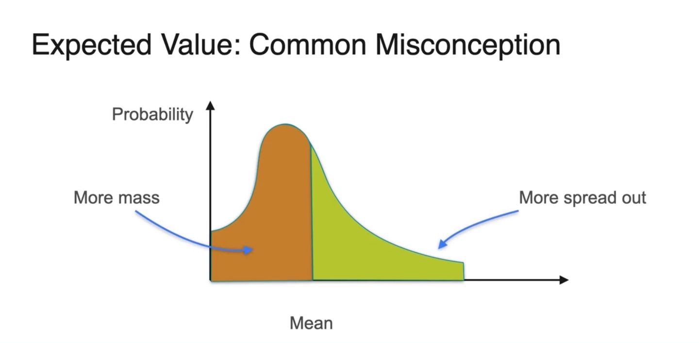 실제 Expected value의 위치는 more mass와 more spread out으로 나뉜 면적을 취한 곳에 위치한다.
