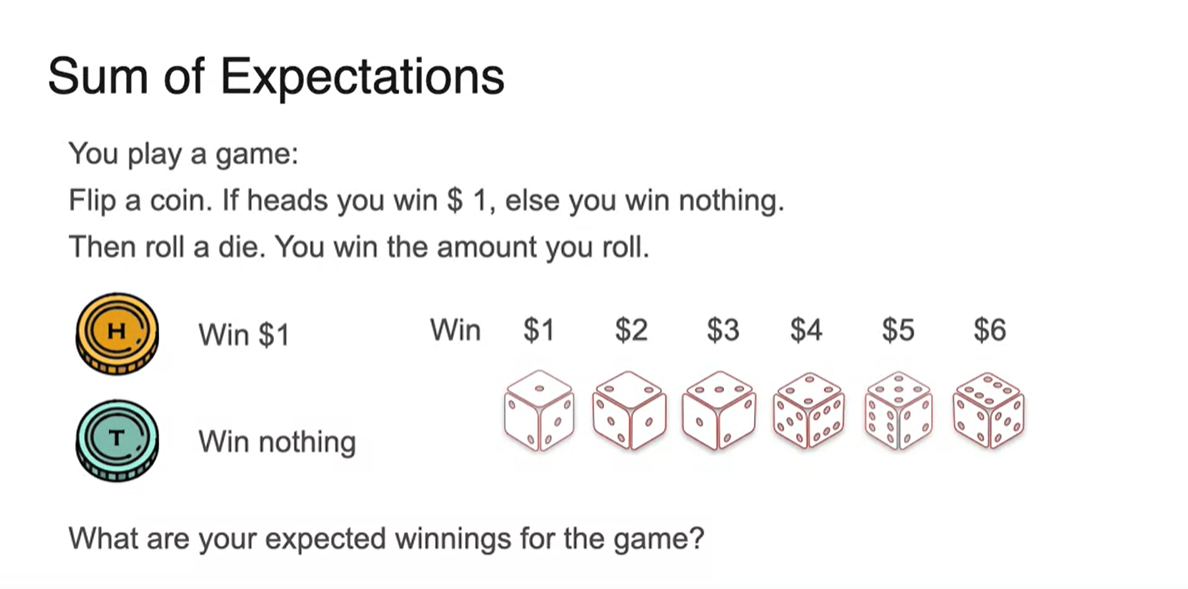 Expected value는 3보다 약간 적은 2.3으로 계산됨을 알 수 있다.