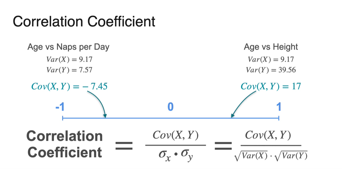 기존 Covariance를 normalizing하는 방법은 두 변수의 standard deviation(표준 편차)로 나눠주는 것이다.