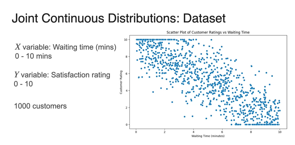 Continous random variables의 joint distribution은 아래와 같은 scatter plot으로 그려진다.