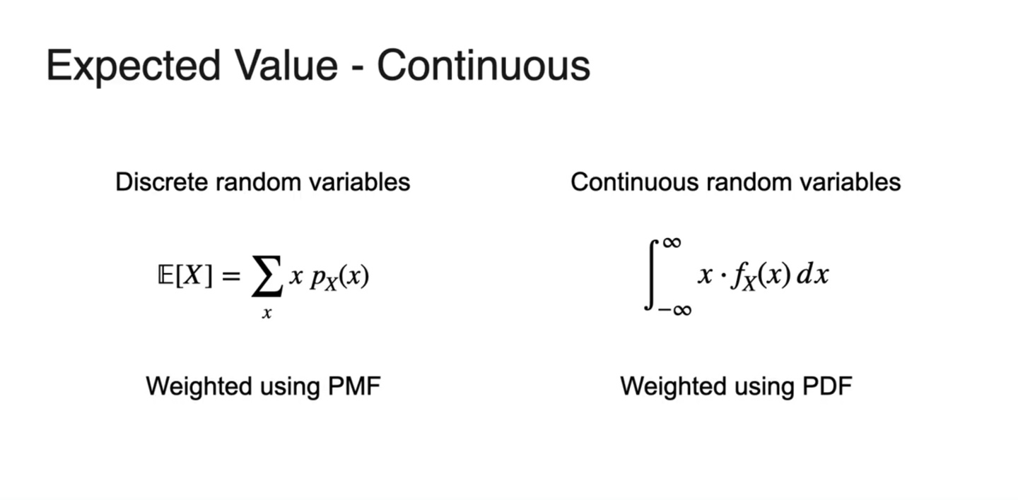 Contionuous한 variables와 Discrete한 variables의 Expected value는 아래와 같이 정의된다.