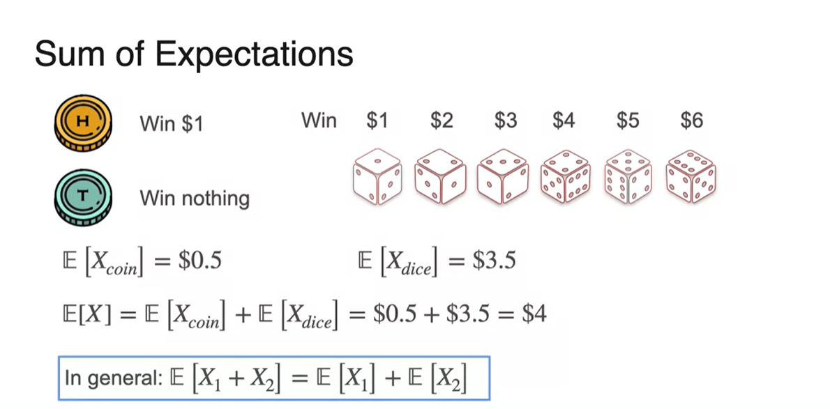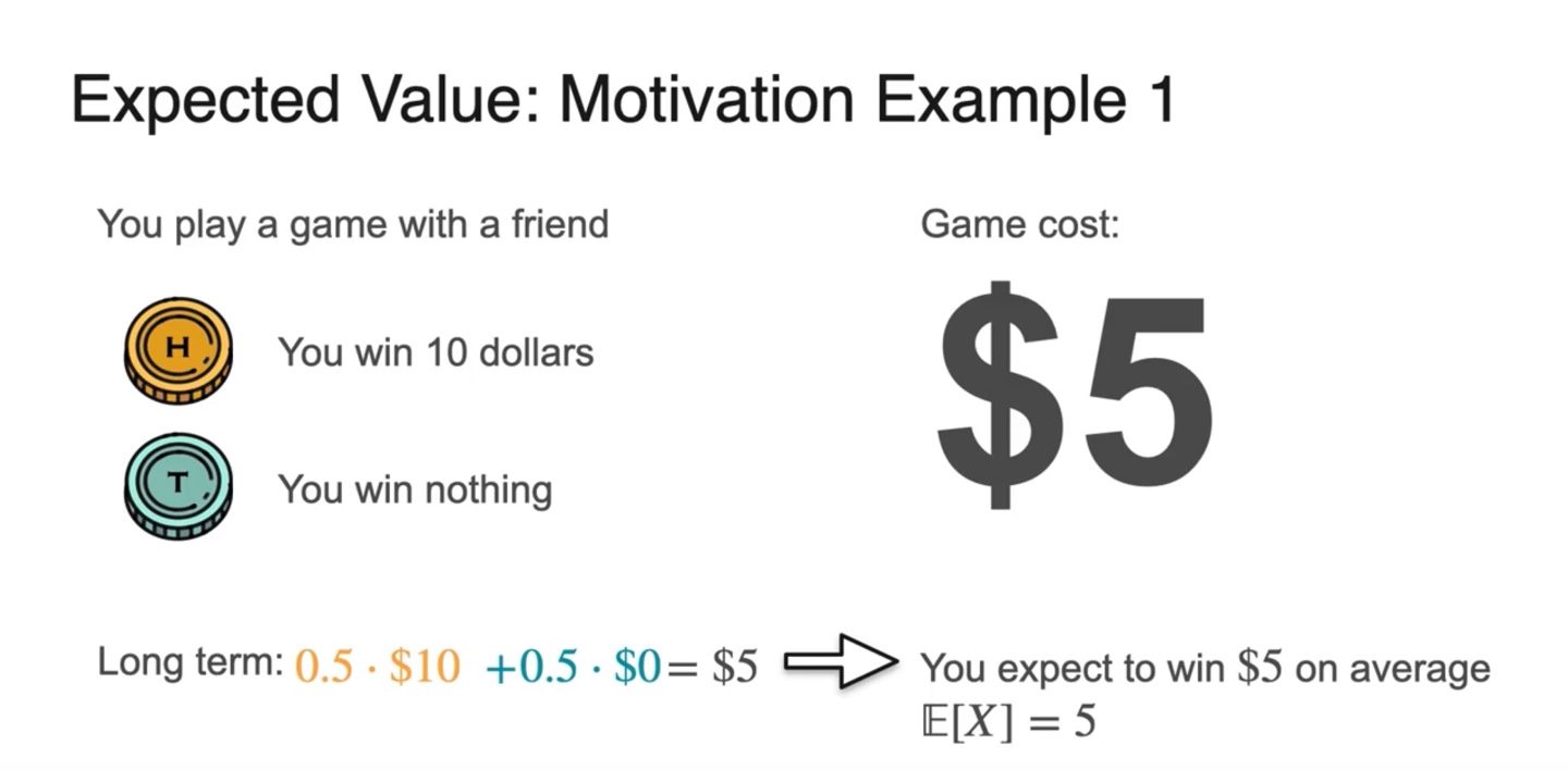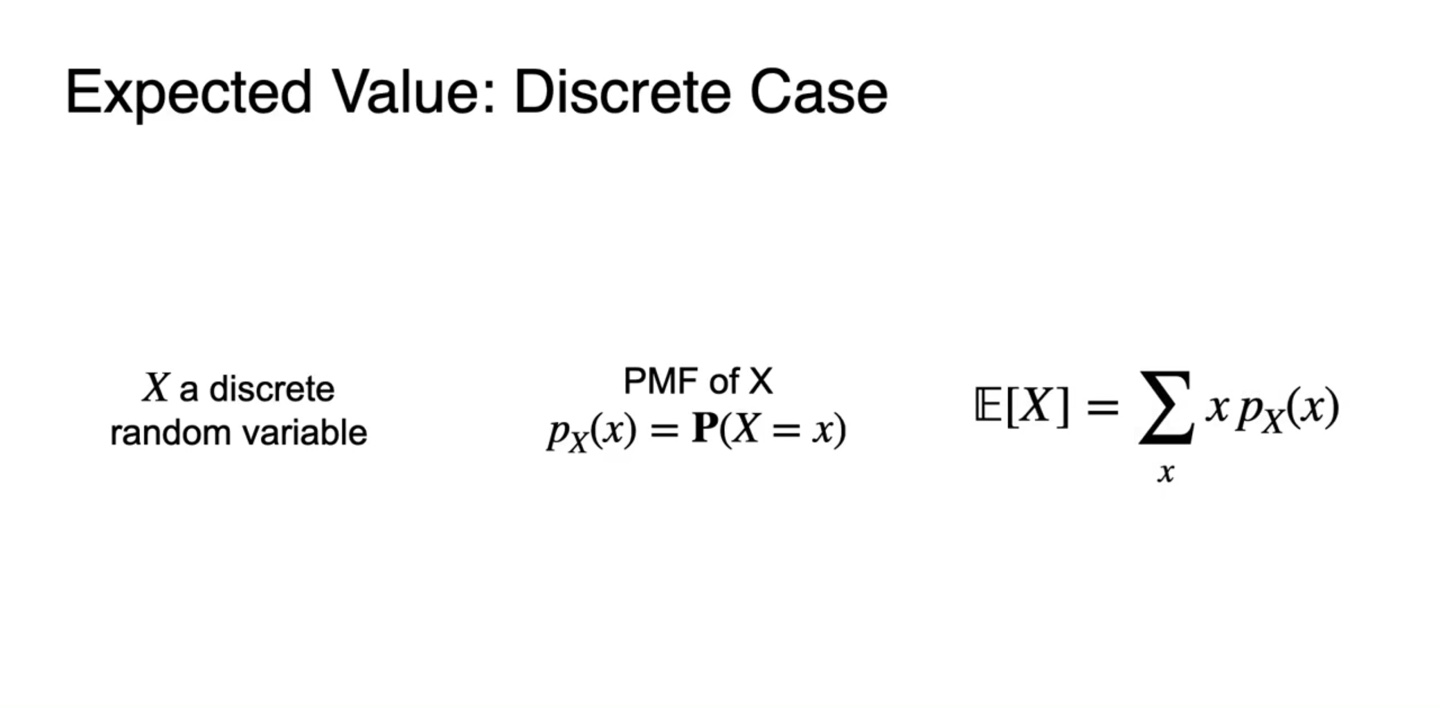 Probability가 주어진 분포의 expected value는 확률과 확률 변수의 곱을 더한 값으로 계산한다.