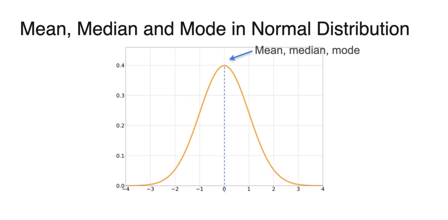 만약 Normal distribution이라면 mean, median, mode가 모두 같은 값을 가리킨다.