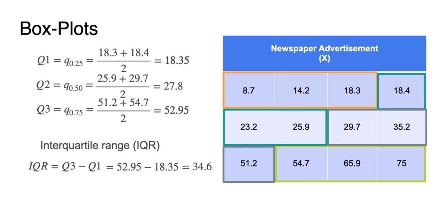 분산(Variance)으로 spread를 측정하면 단위가 제곱배가 되어 해석이 어려워진다.