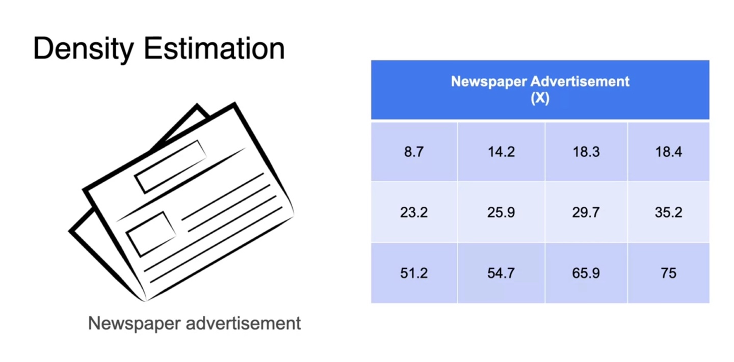 Continuous variable인 와 에 대한 dataset의 분포를 나타내면 아래와 같이 scatter plot으로 그려진다.