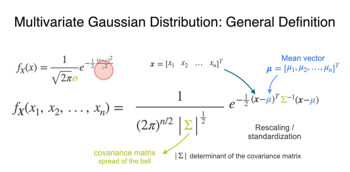 Single variable 에 대한 normal distribution PDF는 아래와 같은 수식으로 전개되었다.