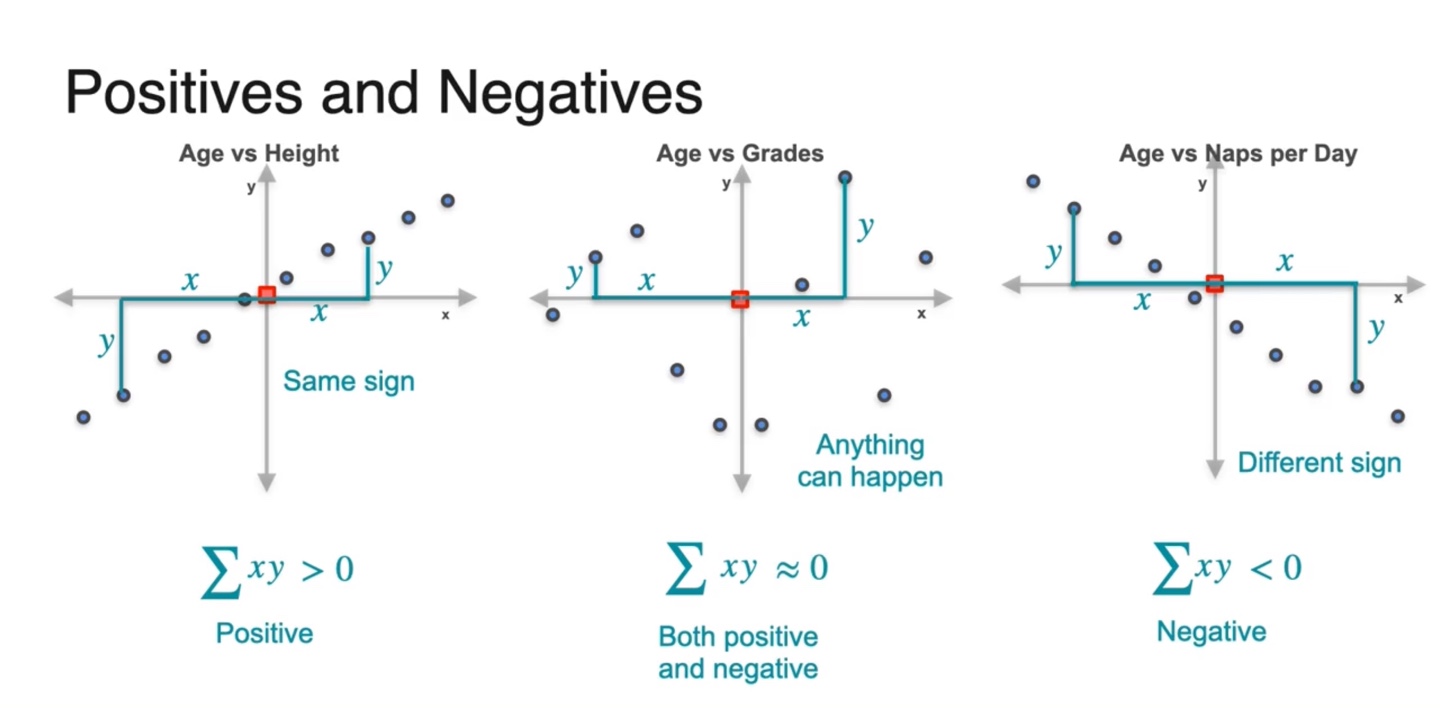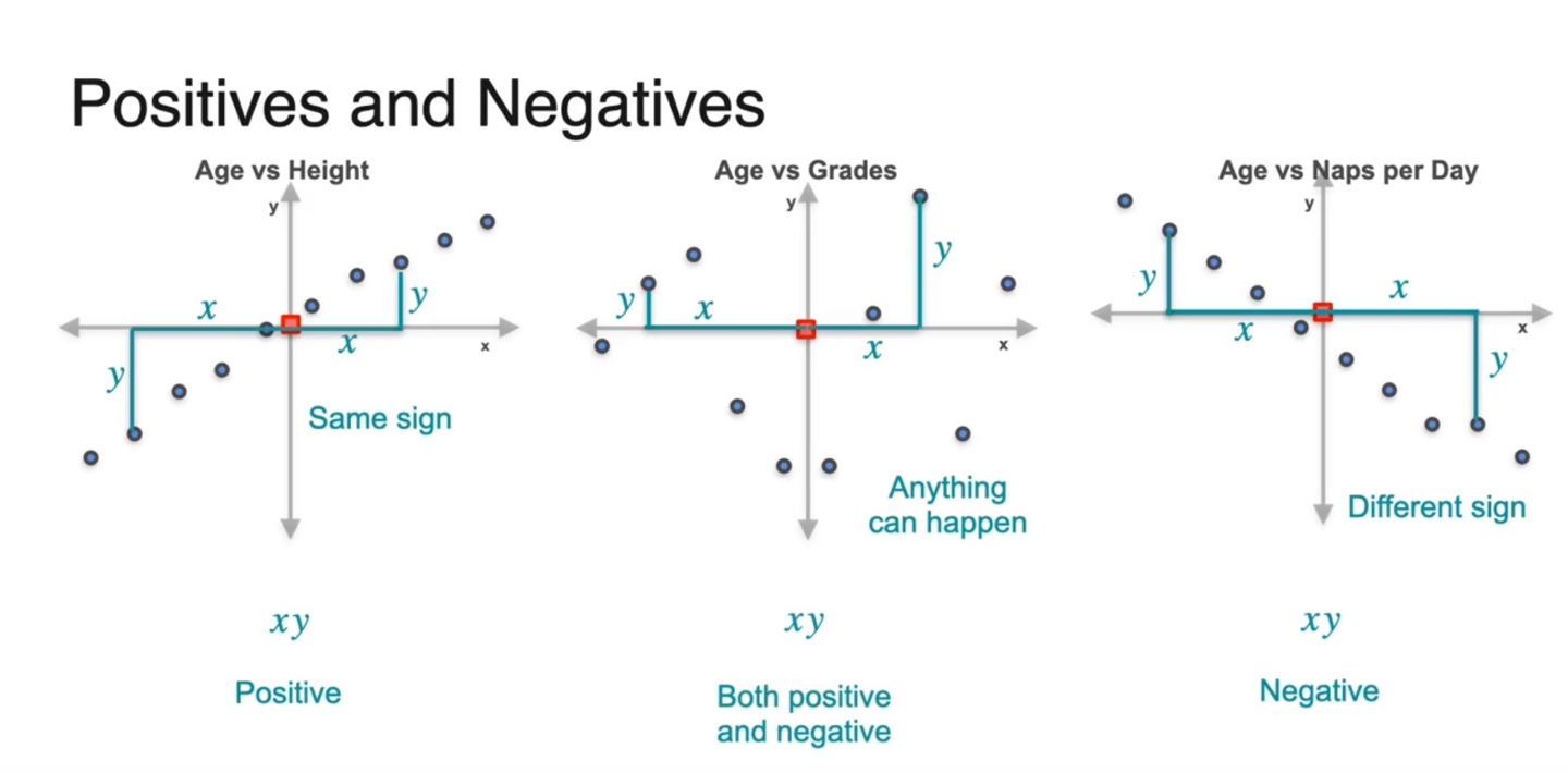 즉, 중심으로부터 떨어진 확률 변수 와 의 변화량이 same sign을 가지기도 하고, different sign을 가지기도 하며, 어떠한 경향성도 없는 값을 가지기도 한다.