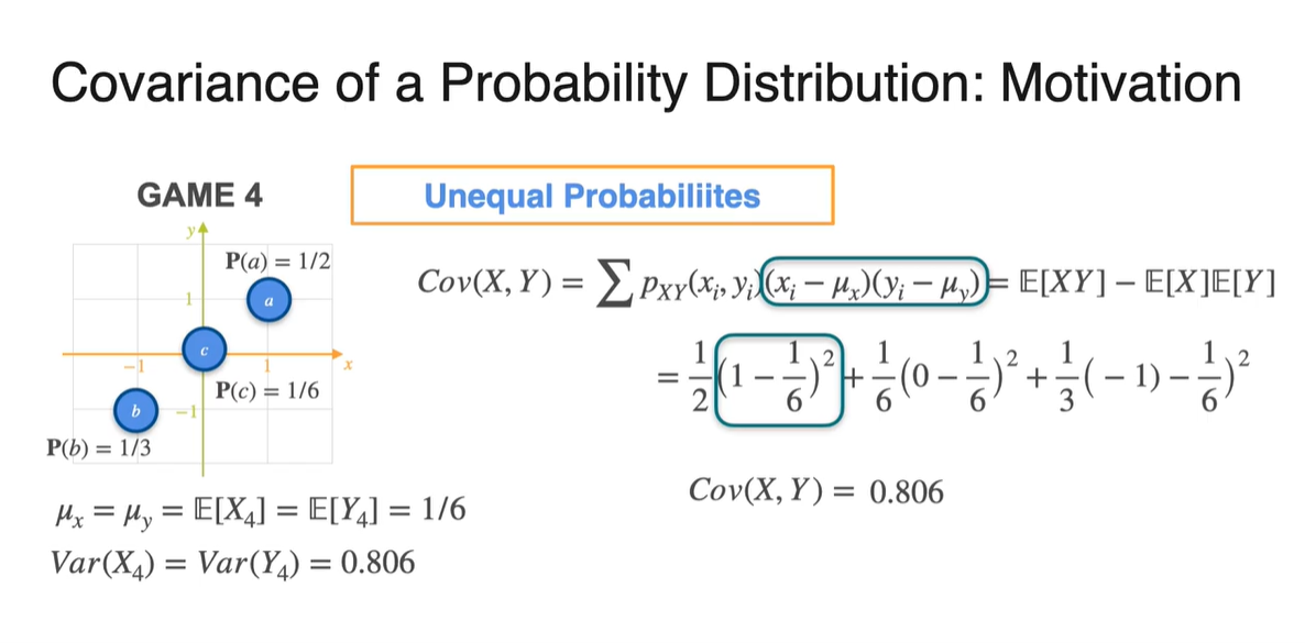 와 , 그리고 와 를 구한 뒤 Covariance를 구해보자.