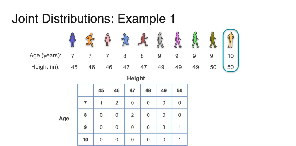 Age()와 Height()를 확률 변수로 갖는 예제를 통해 Marginal Distribution에 대해 알아보자.