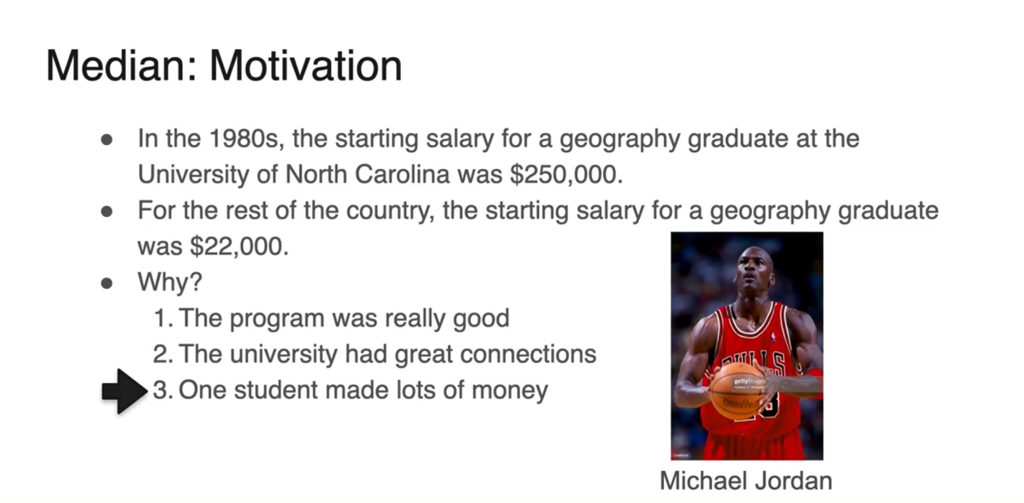 그러나 Outlier인 마이클 조던의 연봉이 매우 높아, 전체 확률을 금방 상쇄시킬 만큼의 변수를 갖는다면 어떨까?